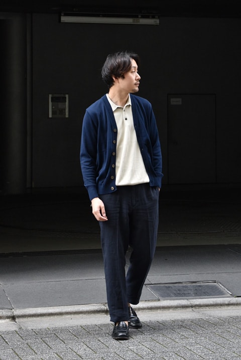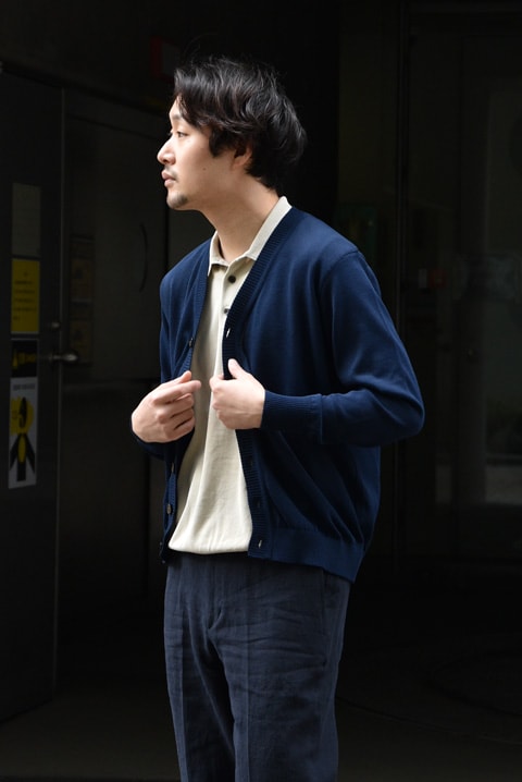 そして今年の新作、綿ポリ素材のカーディガン。