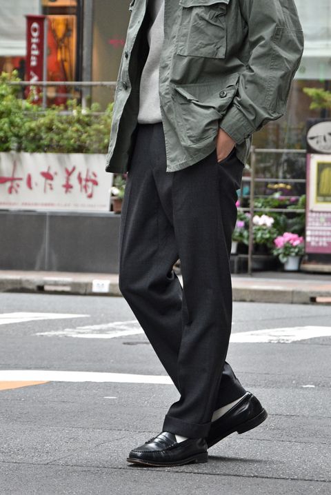 マッカーサーよりも細く、ノータックやツータックよりもゆとりあるシルエット。