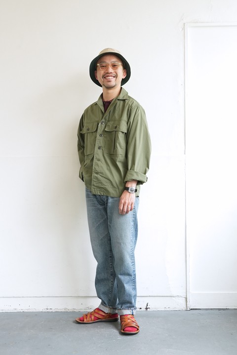 もはやサンダルをを超えた夏の革靴です。やっぱりこの色目にはミリタリーのオリーブや薄いデニムを合わせたくなります。