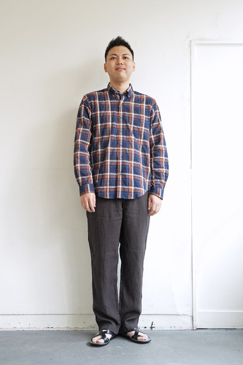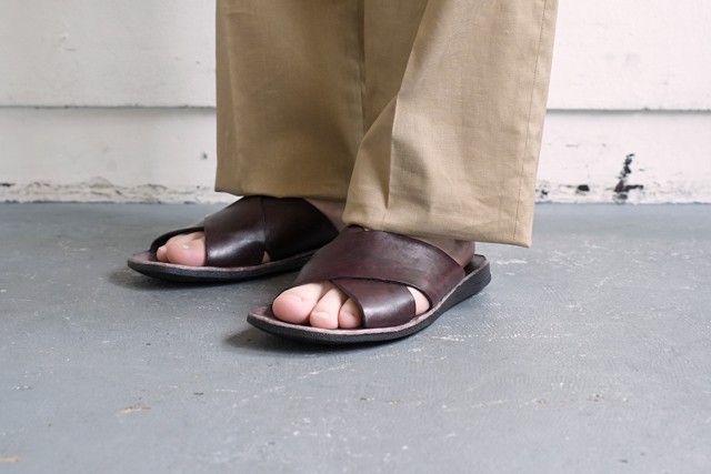 こちらのストラップサンダルのイタリアらしい色目に惹かれました。決してアメリカにはないけど、アメカジに合ってしまう不思議なバランス。