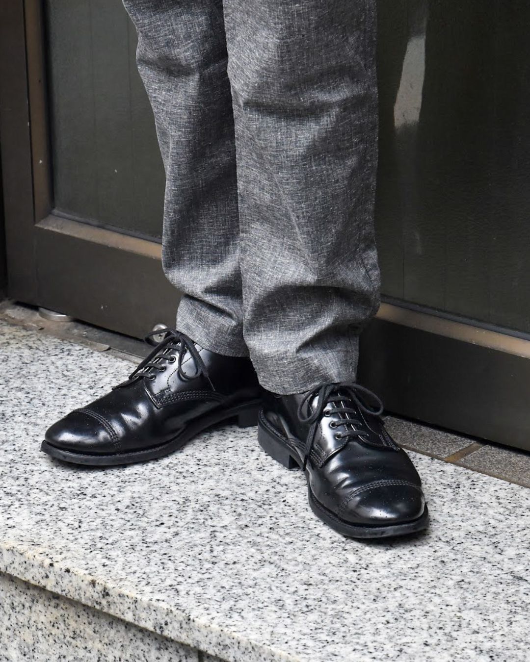 アッパーはポリッシュドレザー仕様。光沢感をがあり傷や汚れが付きにくく、比較的雨にも強いのが特徴です。