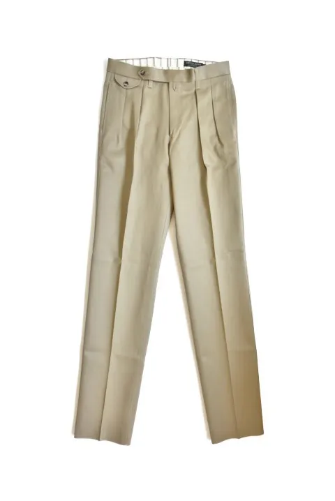 ダグラス・マッカーサーが好んでいたトラウザーをデザインソースに復刻させた一本です。フロントには2タックにウォッチポケットを配し、程よいテーパード加減のクラシックなデザイン。