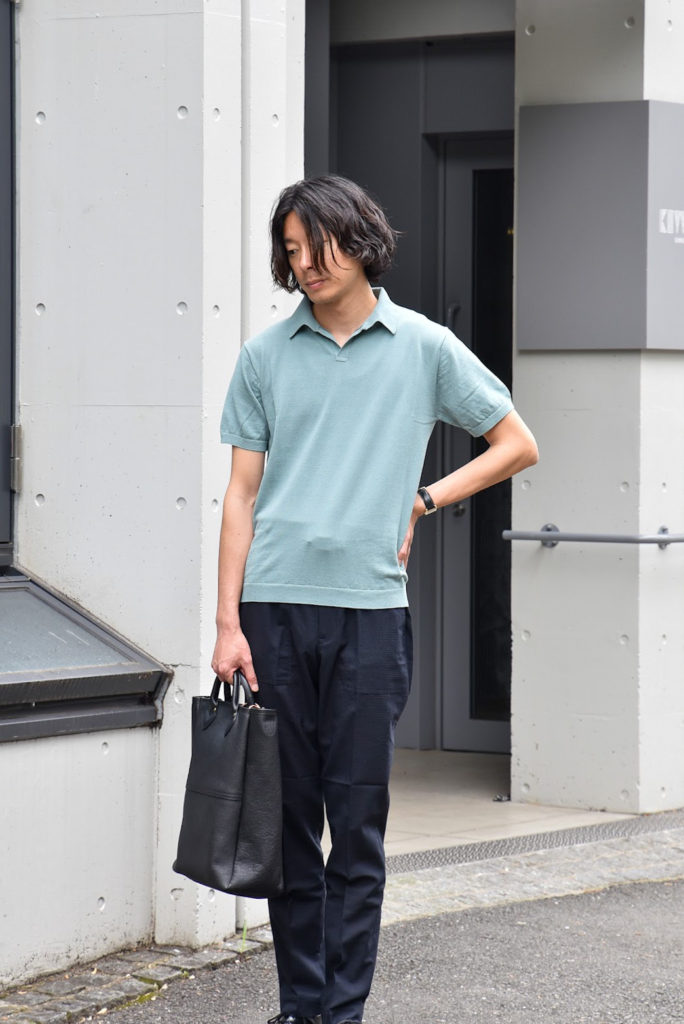 ICE COTTON SKIPPER POLO NECK ミストグリーン