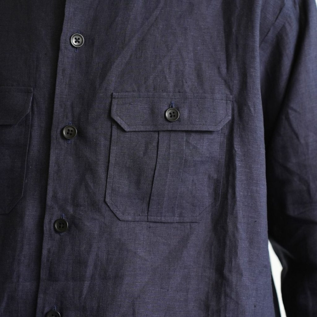 肌当たりは柔らかで、リネン特有の通気性の高さと、着続けることでだんだんと生地が馴染んでくる経年変化もお楽しみいただけます。