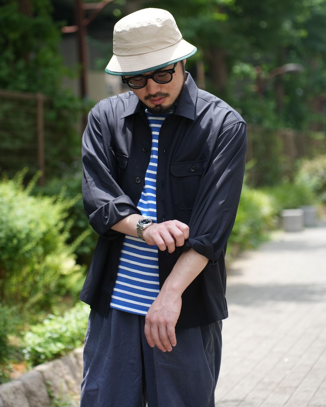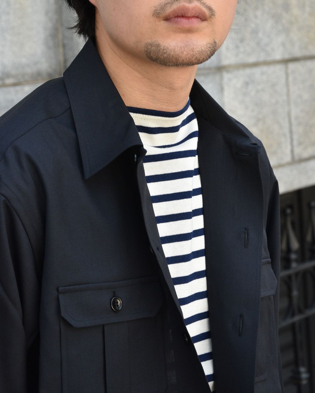 お色はどちらもネイビーですのでコーディネートの難しさはございませんが、スタイルのサンプルとしてご覧くださいませ。