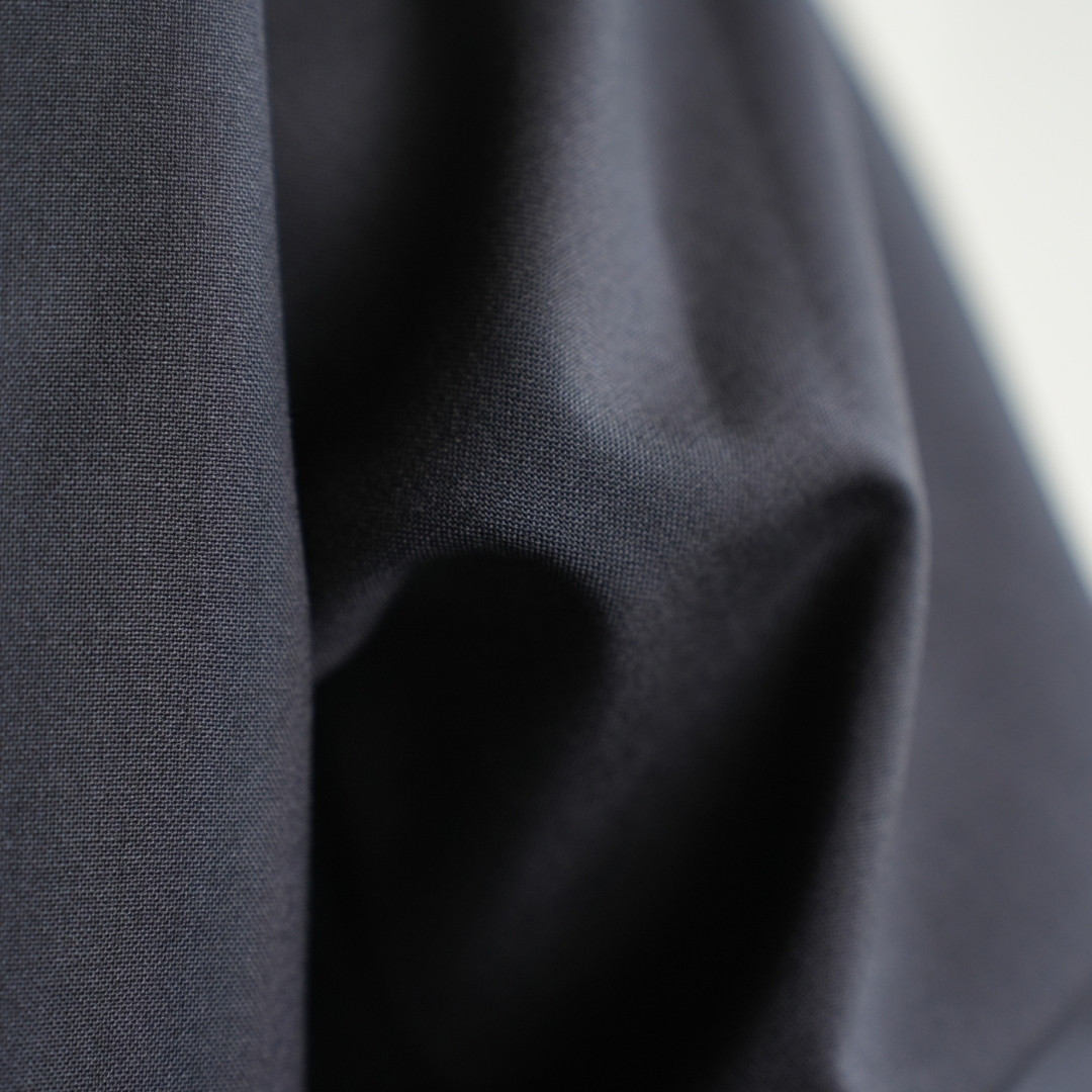 こちらはTECH WOOLと呼ばれる夏用のウール素材になります。ウール特有の抗菌・消臭機能に加えて、イージーケア・ナチュラルストレッチ・接触冷感の機能も備えております。 されに生地に特殊加工を施すことでウォッシャブルを可能にしております。 着た時はウールのドレープ感から出る、品の良さを感じていただけます。