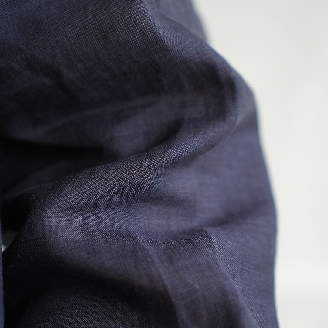 肌当たりは柔らかで、リネン特有の通気性の高さと、着続けることでだんだんと生地が馴染んでくる経年変化もお楽しみいただけます。