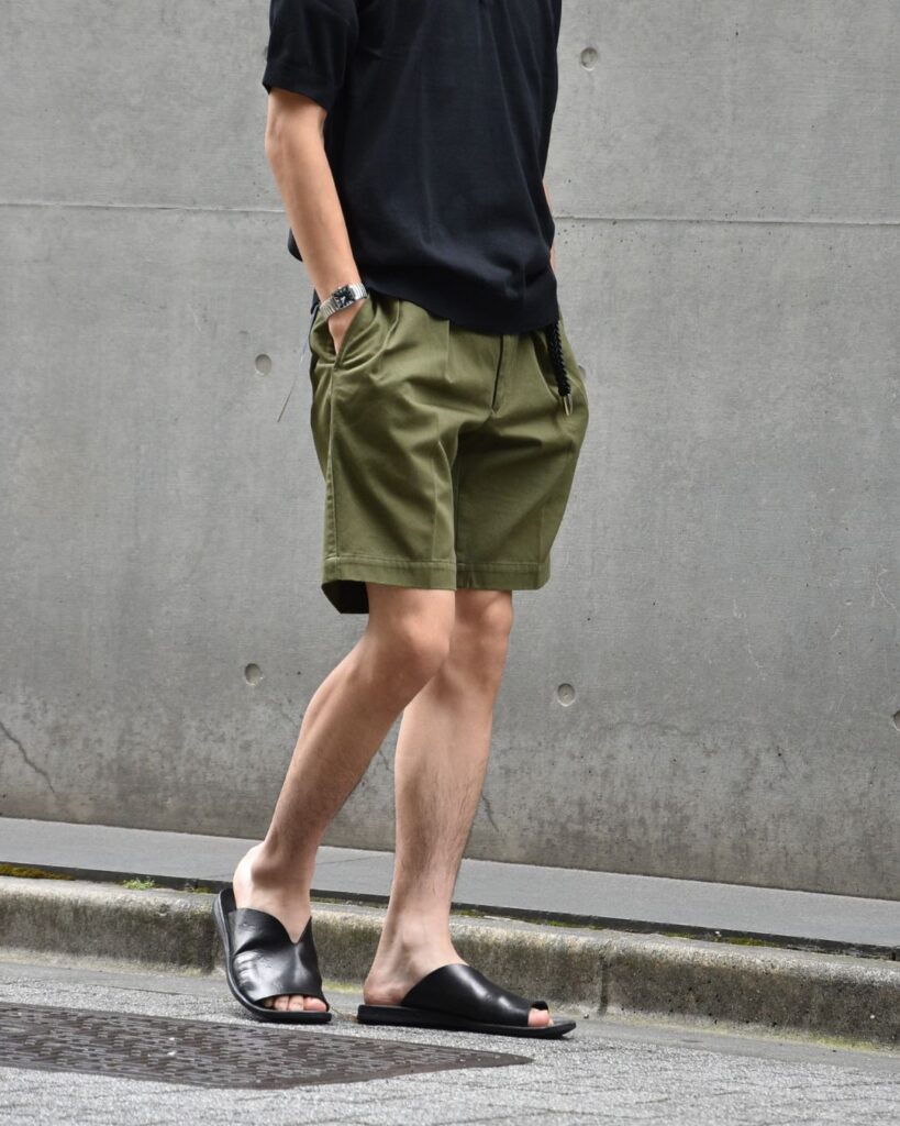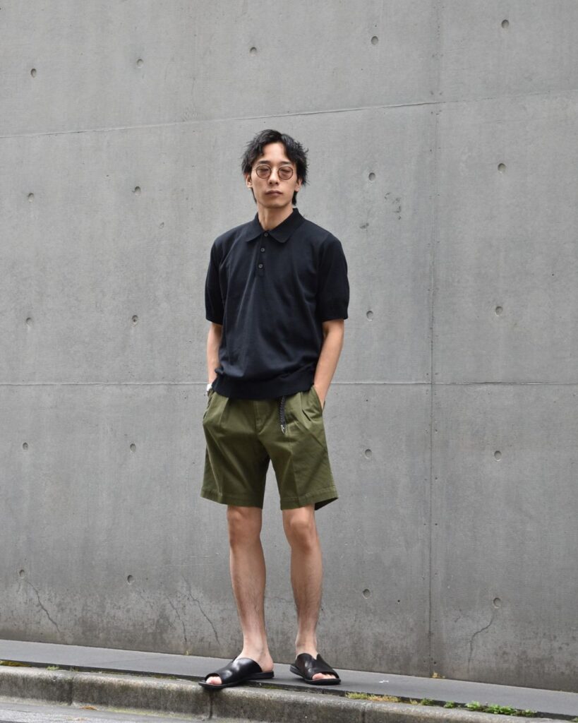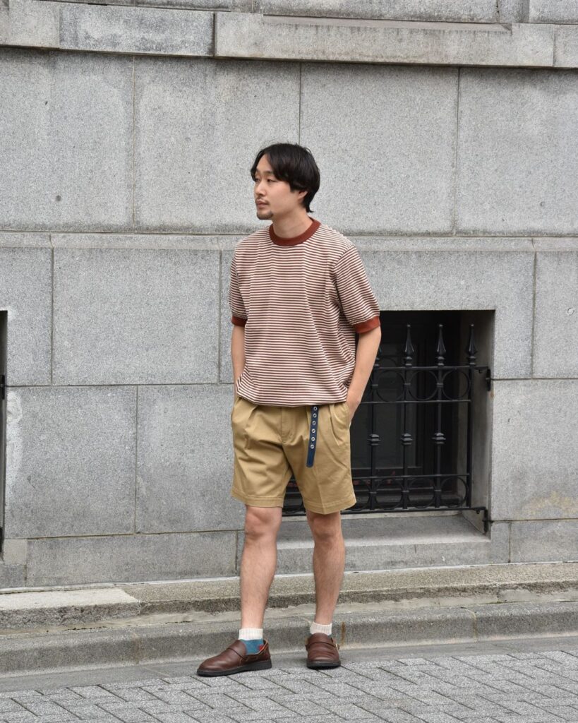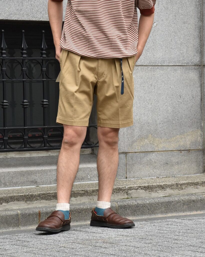 大定番のツータックドレスチノをベースとしたショーツ型は、腰回りのタック・プリーツが大人のサマートラッドスタイルにはうってつけかと。