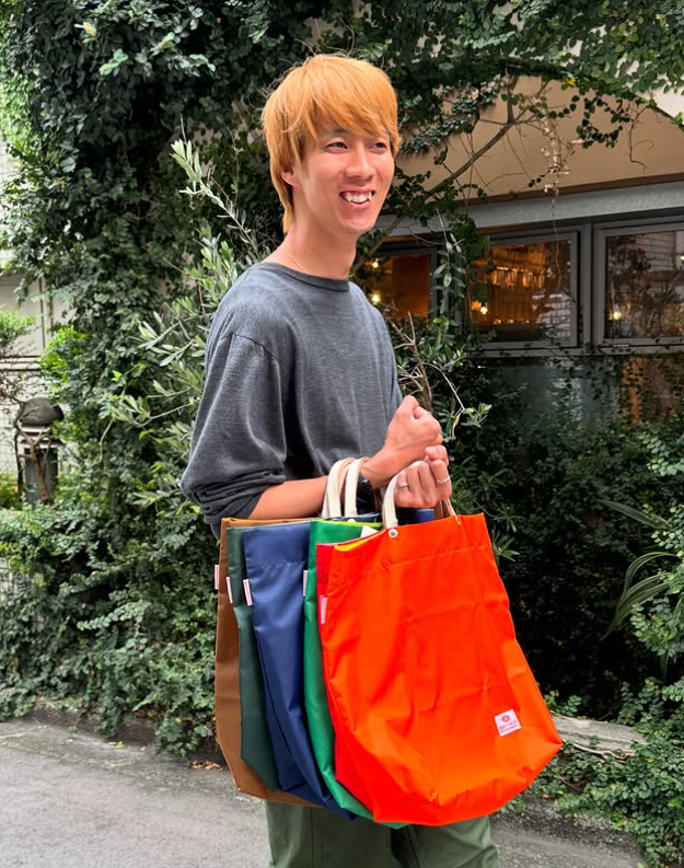 彼の手元にはいつもしなやかなNYLON PACKがあった。
