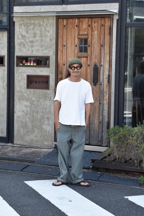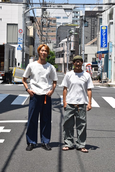 最後は長らくブランド定番素材として展開されているミニ裏毛のTシャツにデッドストックの生地を使用したファットパンツの組み合わせ。