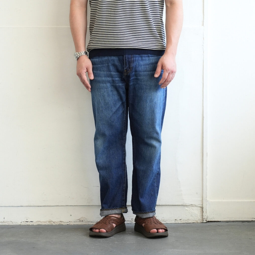 裾に生地を貯めて穿いても、折り返してジャストでセルヴィッチを見せてもサマになるシルエットです。