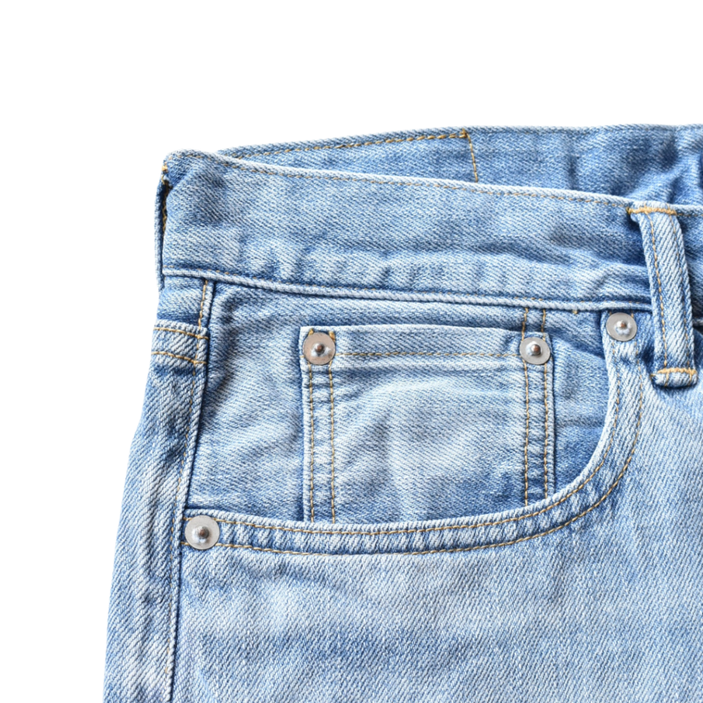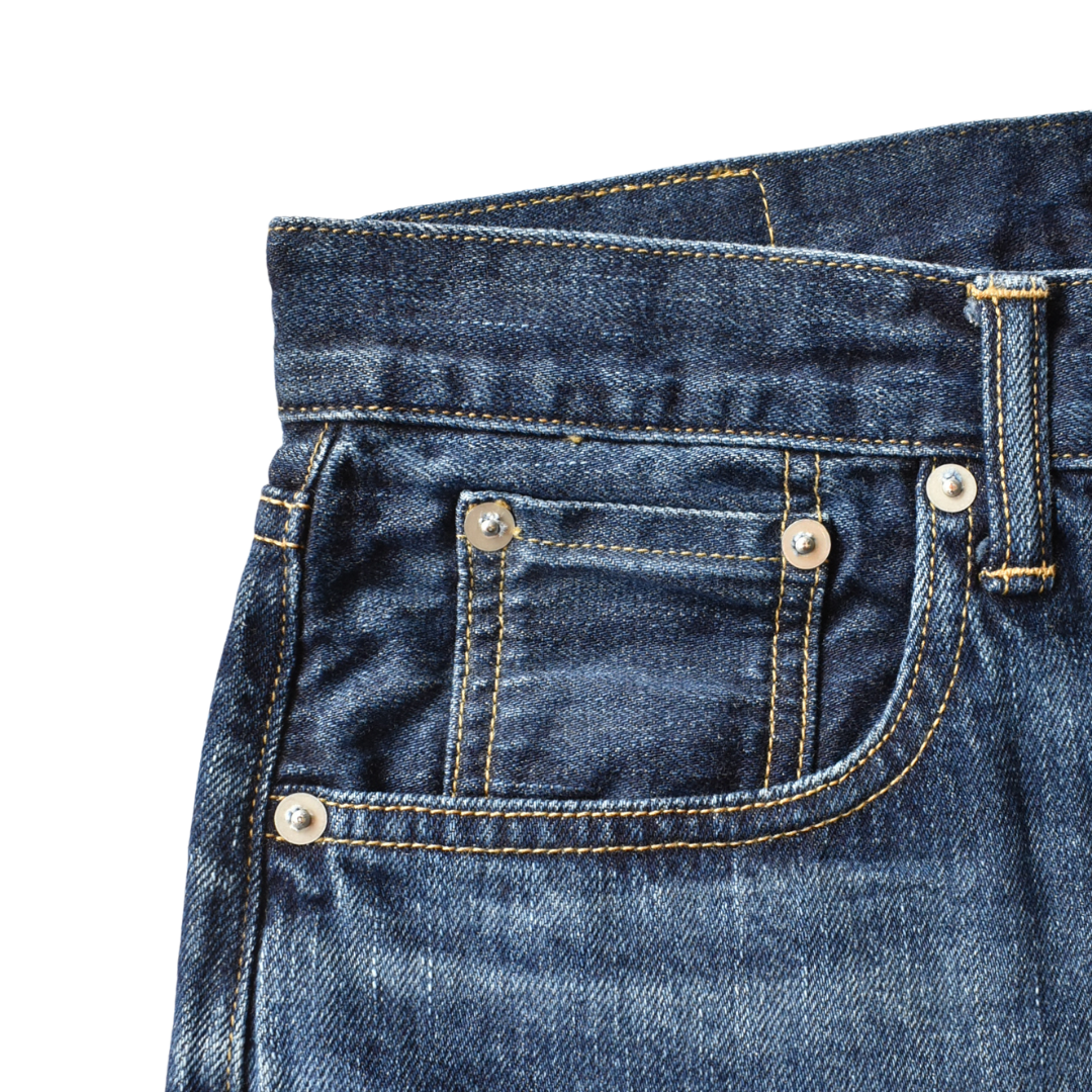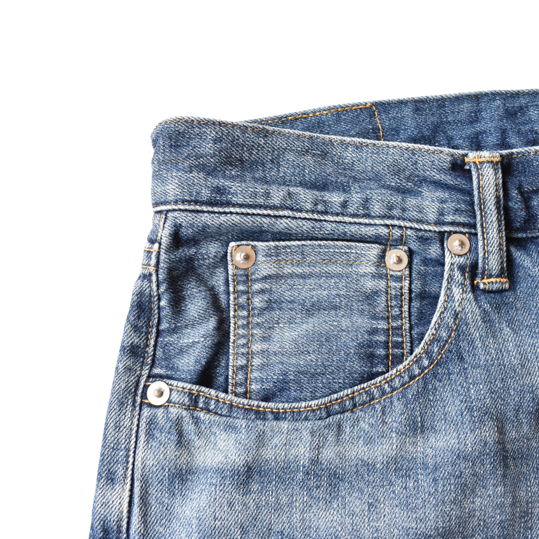 経糸と横糸の糸の番手(太さ)を変えることにより生地の『軽さ』と『風合い』両立させた、JAPAN BLUE JEANSオリジナルのセルビッチデニムなのです。