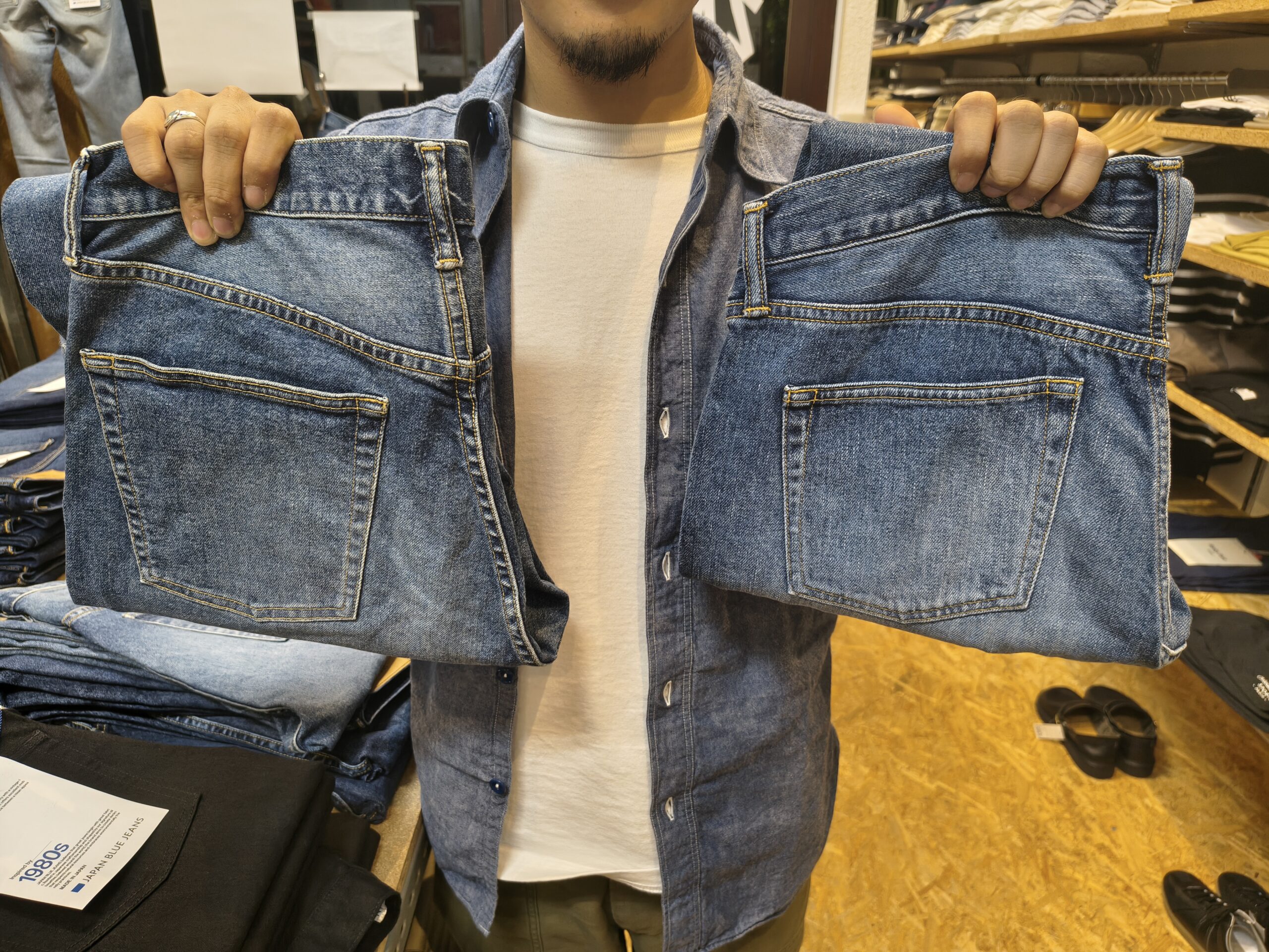 あ、ちなみにですが向かって左側が『12oz ULTIMATE STRETCH』のジーパンです。