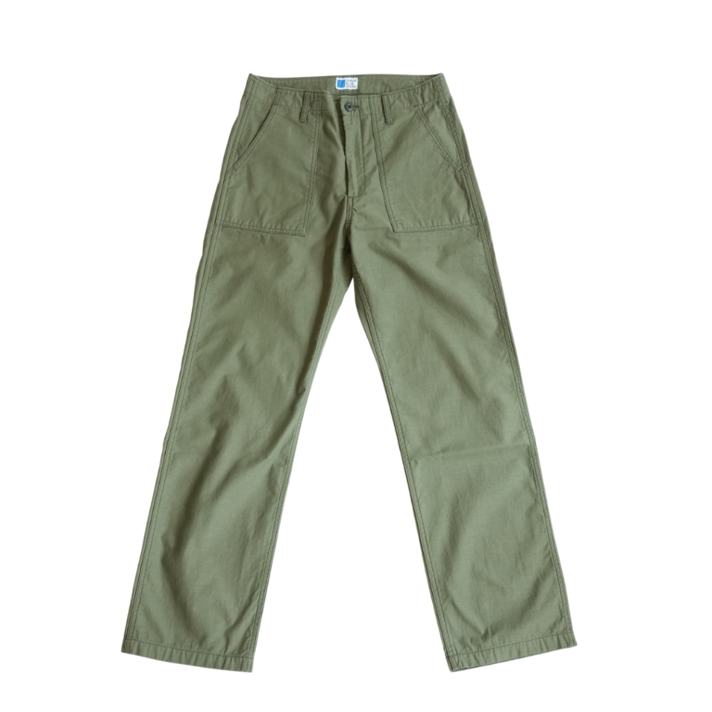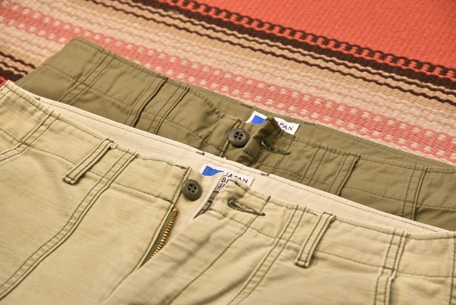 生地にはヴィンテージのミリタリーパンツをモチーフにリプロダクトした、バックサテン生地を使用しています。