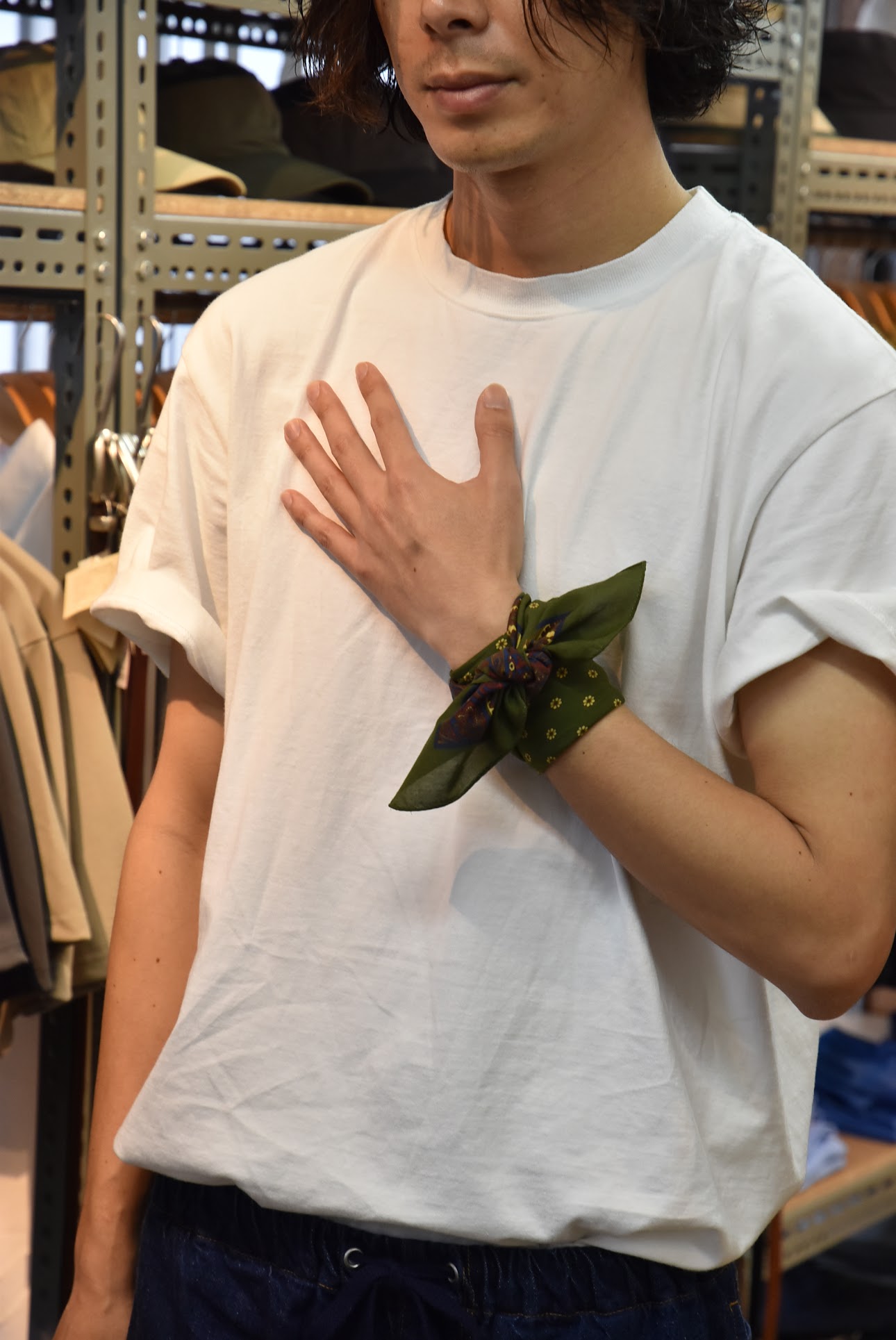 まるでアルバムを見返すかのように、このやわらかな肌触りを持つコットンシルクのスカーフとのランデブーをご覧いただきたい。