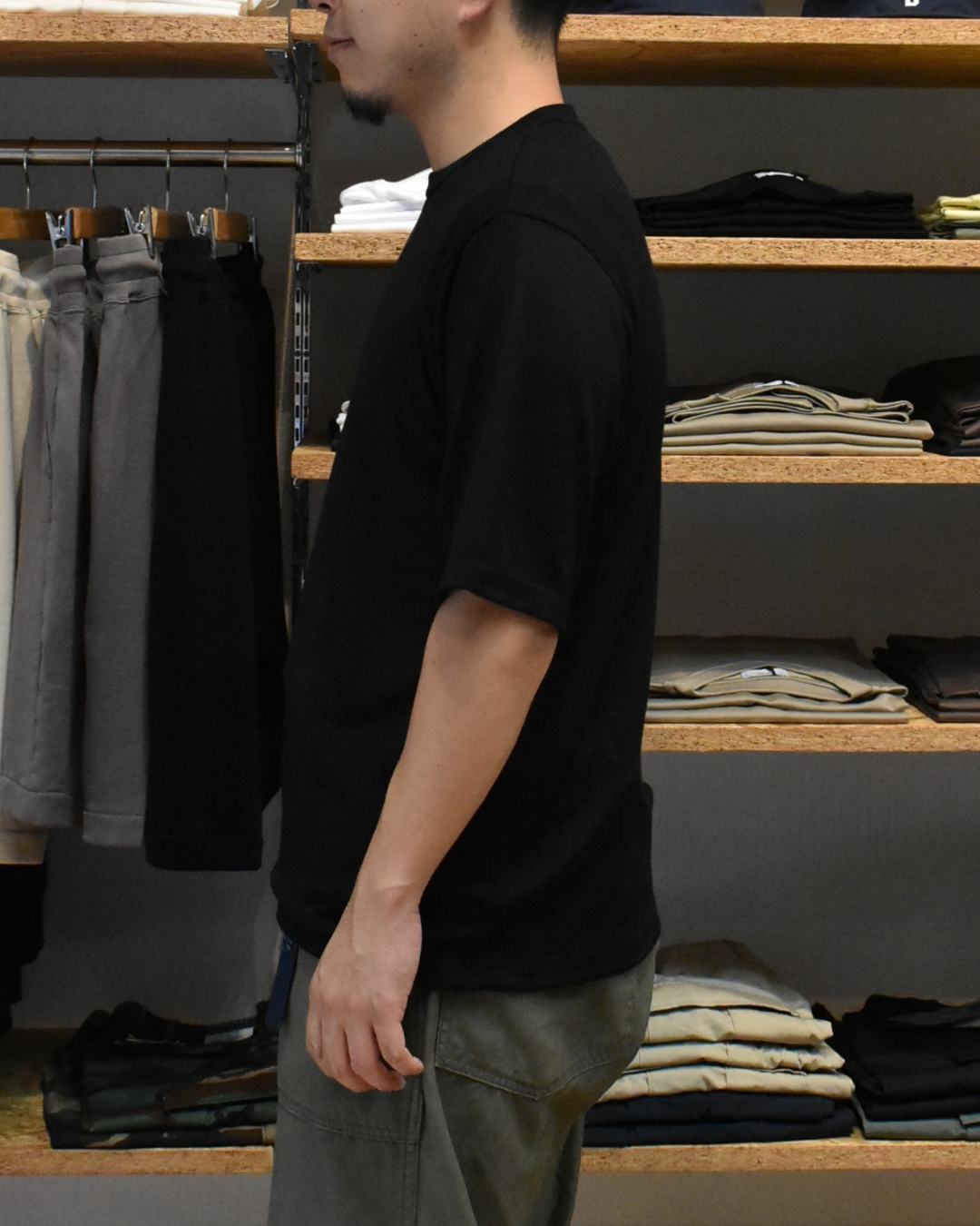 アウトドア用とは異なり、しっかりとファッションという観点で作られたTシャツということがわかるシルエットです。