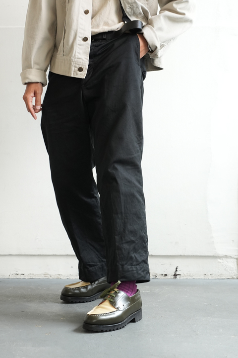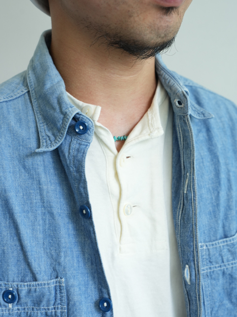 でも汚らしくも、ボロくも見えない不思議なバランス。基本的にシャンブレーシャツを着るときは、必ずセットで組み合わせております。
