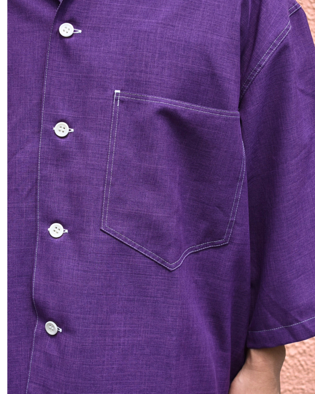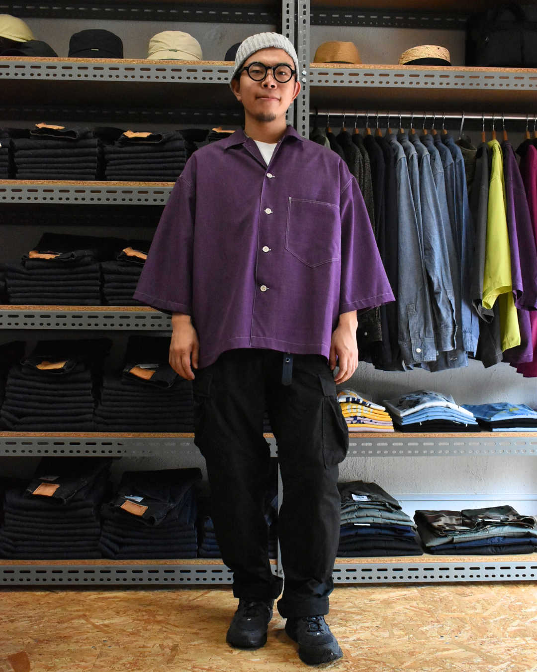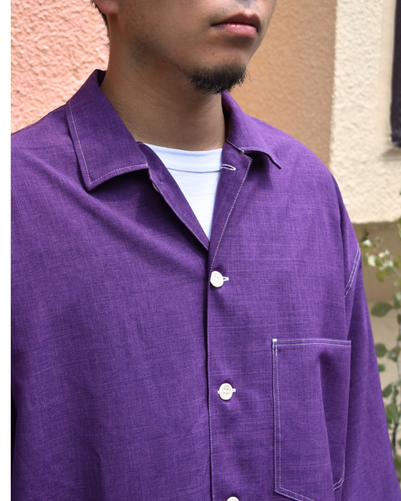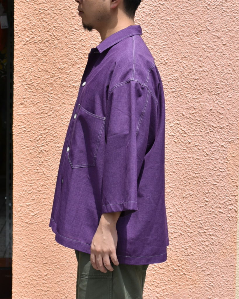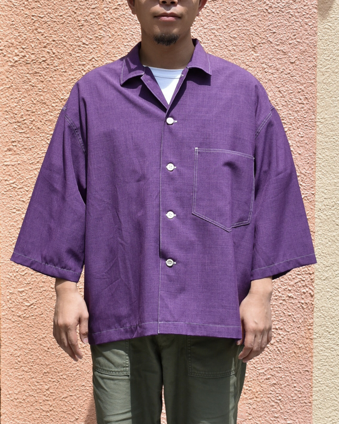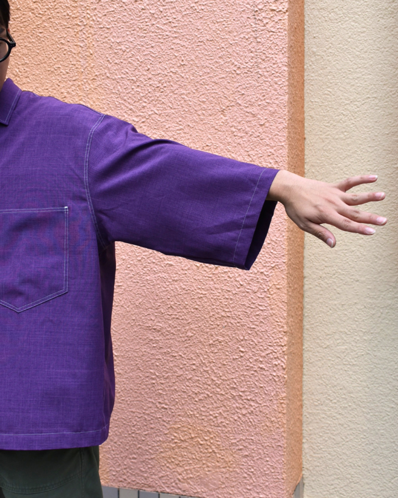 形は全体的に余裕を持たせた七分袖の開襟シャツでございます。