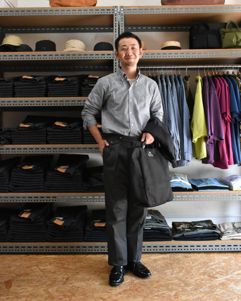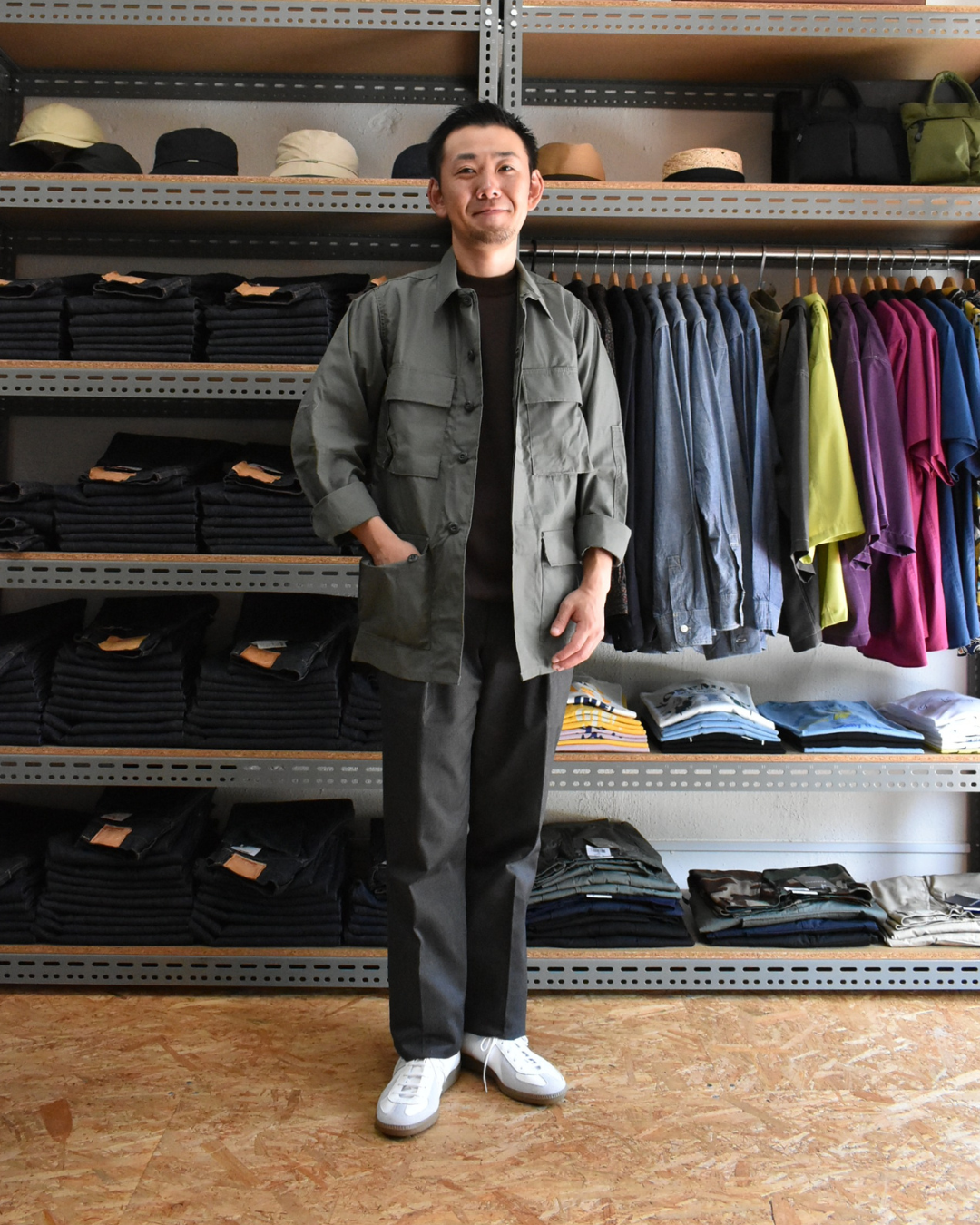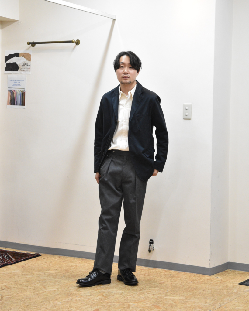 普遍的な一本でさまざまなスタイルに活用していただけますが、やはりオンオフ兼用、ビジカジで穿けるというのが特徴かと。