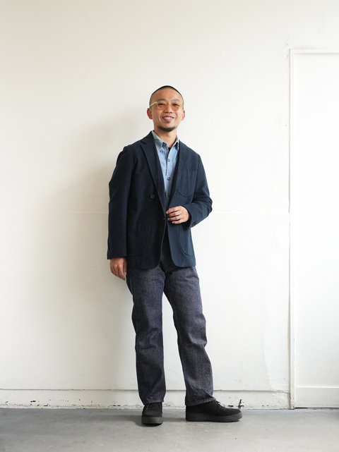 テーラードに着古したシャンブレー。メリハリをつけたスタイル。やはりこうした服装が一番落ち着きます。」
