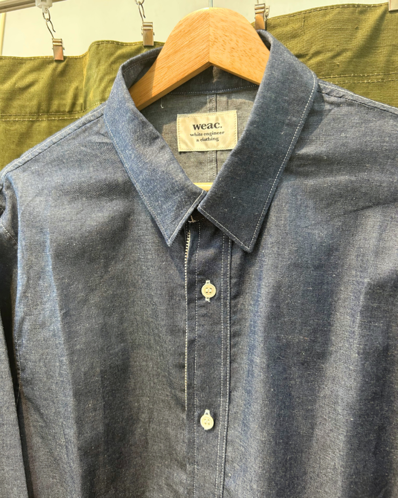 シャンブレーはコットン×リネンで、暑さ厳しい今でも着やすい素材感。