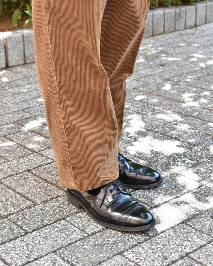 もう一色のオリーブは穿き慣れた軍パン感覚ですが、生地がコーデュロイなのでどこか優しく、マイルドに見えるでしょう。