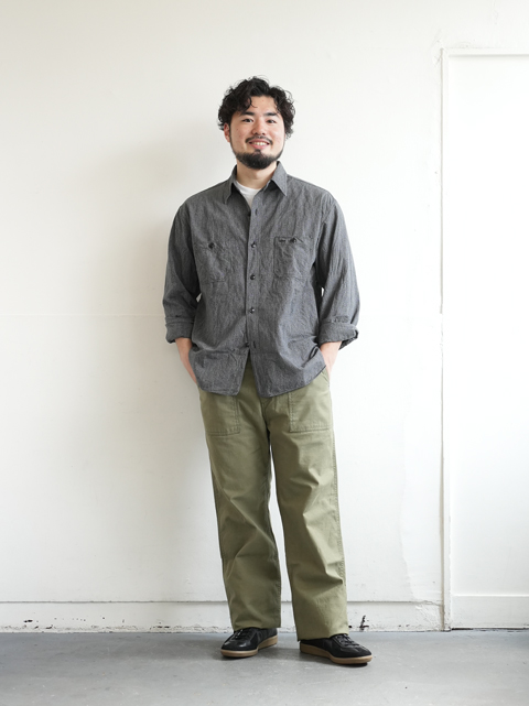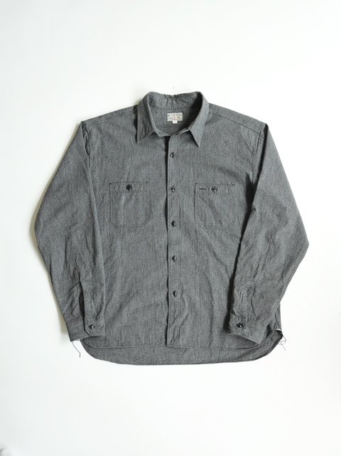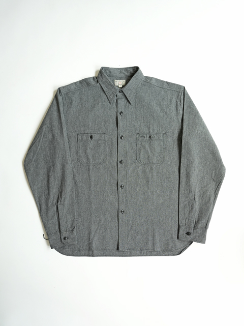 継続で展開中のシャンブレーシャツと同型の生地違いのこちら。