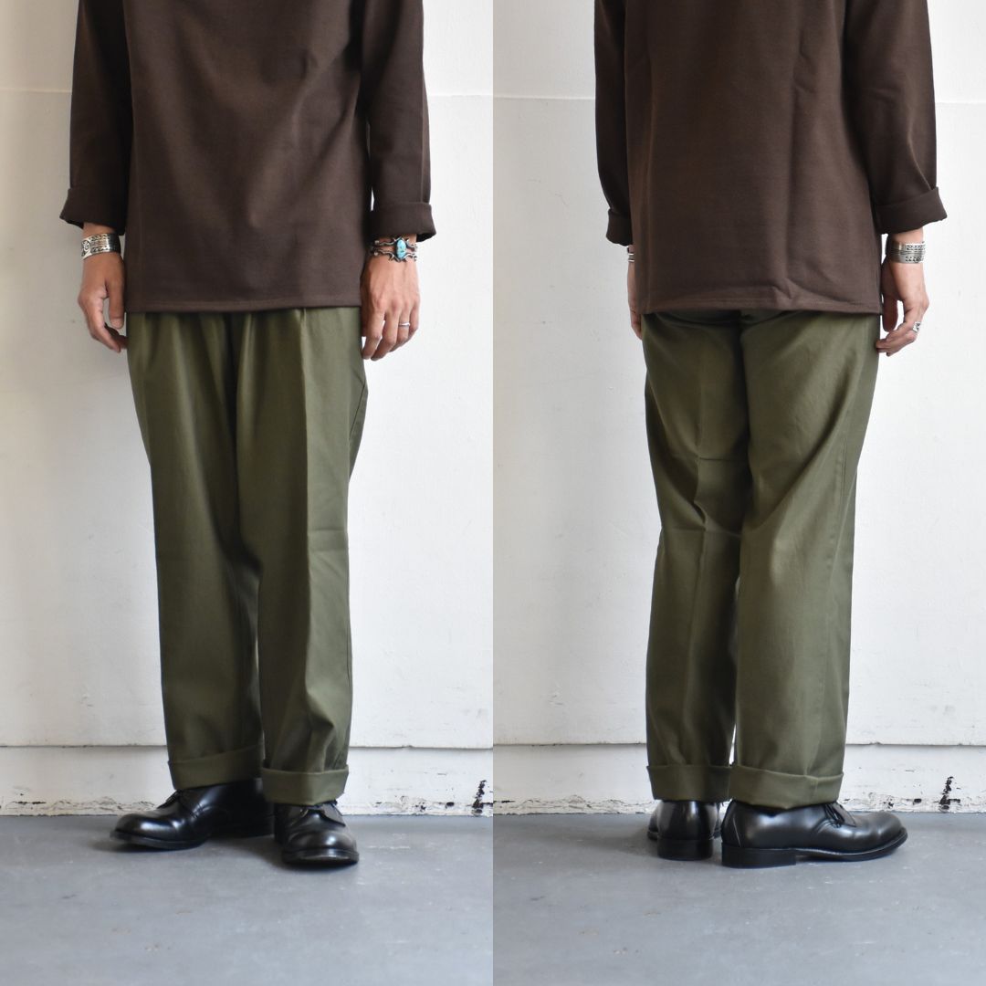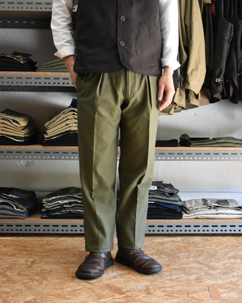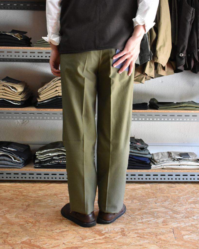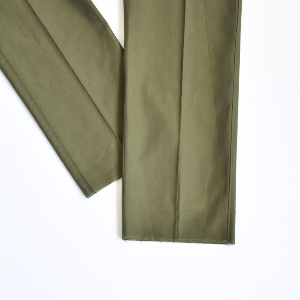 オリーブのパンツとなれば、基本的にはファティーグやカーゴでポケットが特徴的なものがほとんど。