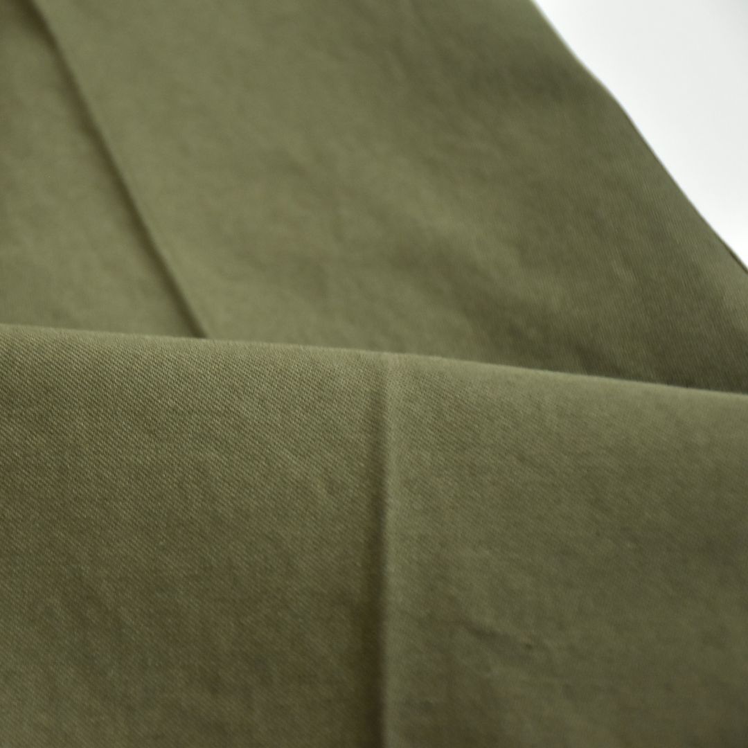 生地はコシがありつつも、手触り柔らかく、後にエイジングも期待できるバックサテン。(ファティーグパンツでよく使われてる生地です)
