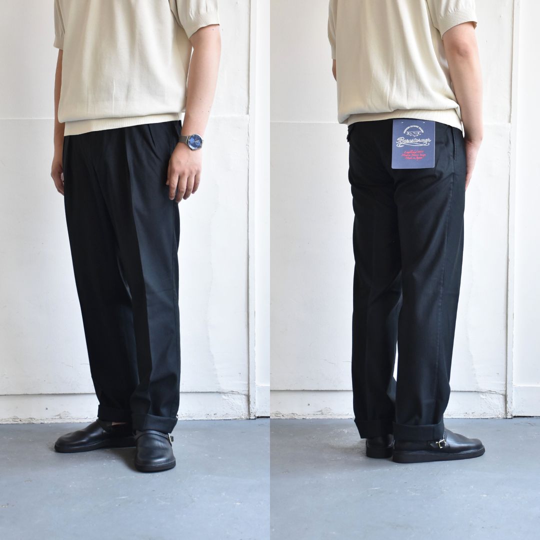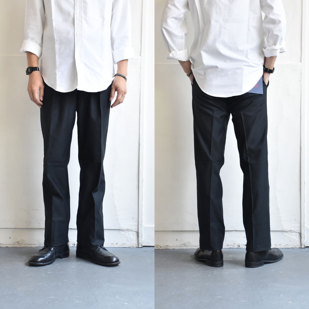 やや太めながらもズドンと野暮な感じではなく、日頃太いのをよく穿く人がシュッとスッキリとしたシルエットで穿けて、日頃細いのばかりの方も、少し太いシルエットが楽しめる。