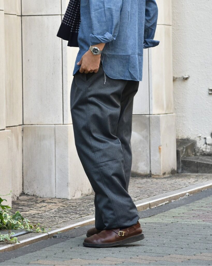 カジュアルスタイルに合わせるグレースラックスも非常におすすめです。