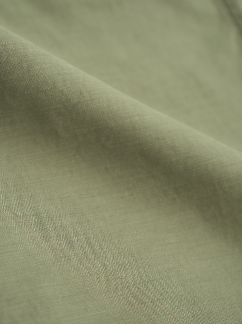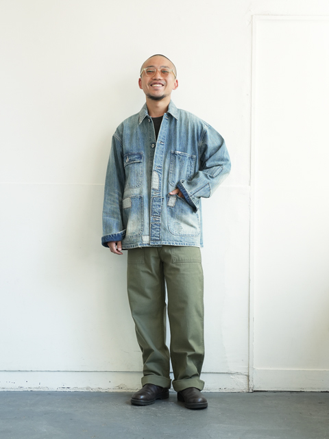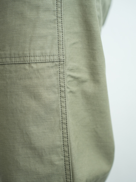 やや明るめのオリーブドラブとあらかじめ洗いをかけたようなパッカリングがヴィンテージライクな雰囲気に仕上がっています。