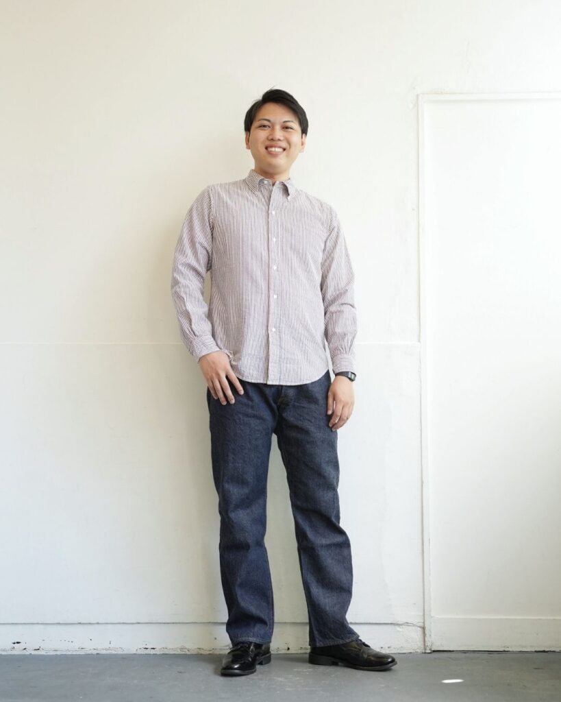 ストライプに青が入っているのでデニムとの組み合わせも自然。ヘビロテ間違いなしの一着になるでしょう。