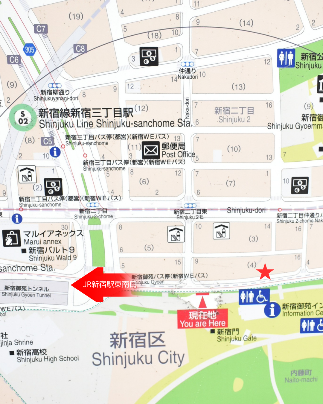 最寄りの駅はメトロだと『新宿御苑駅』。『新宿三丁目駅』からも好アクセス。