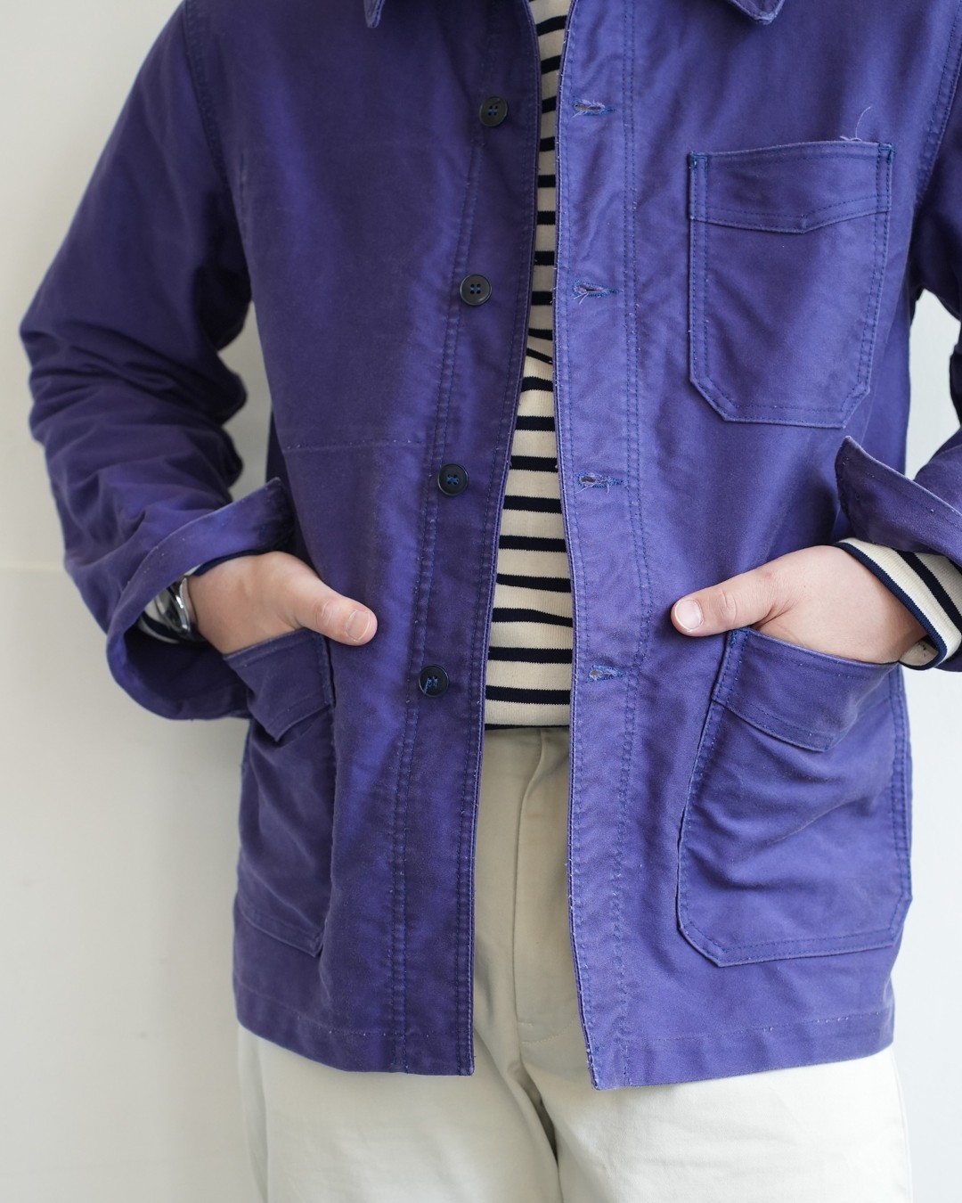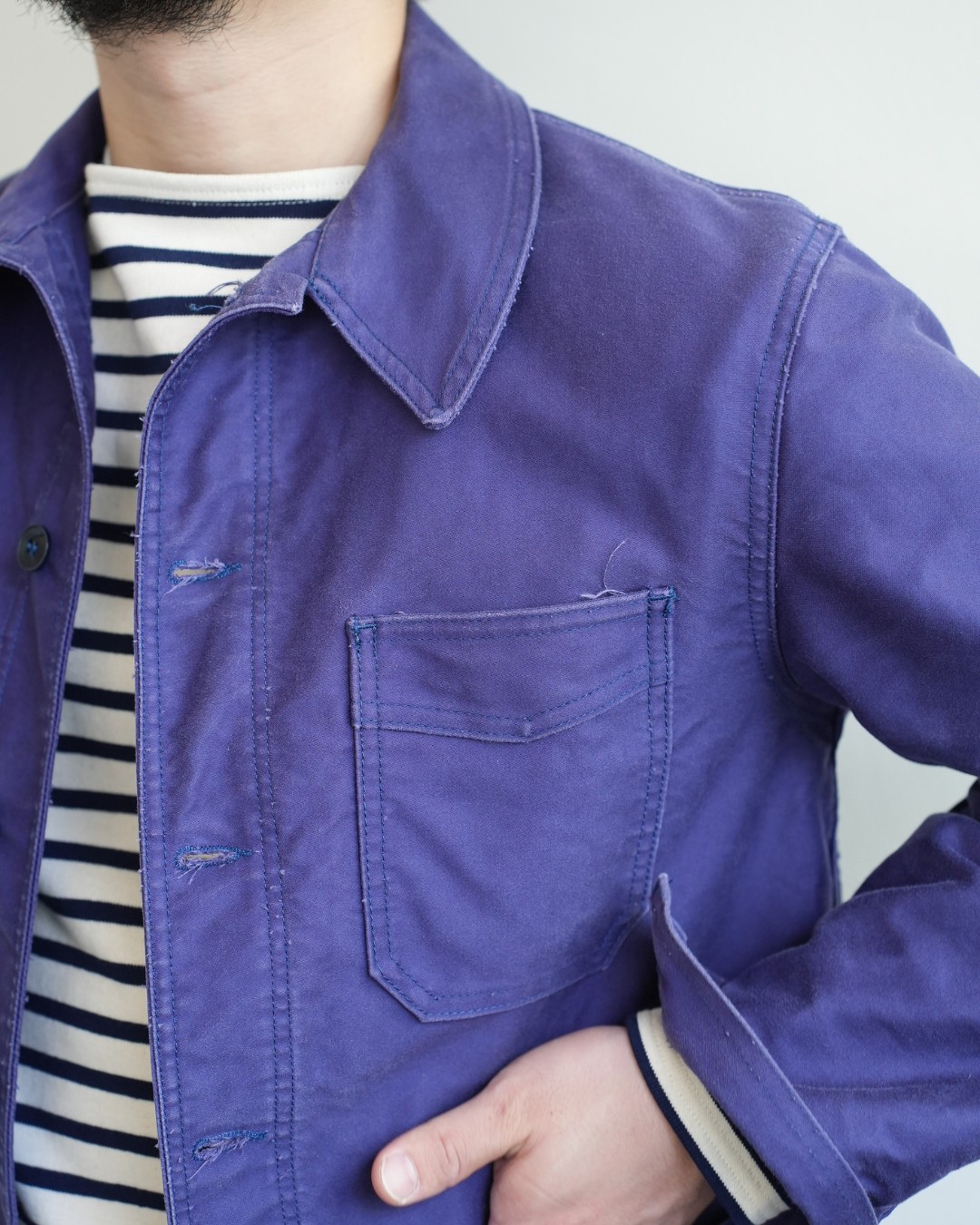フランスで作られた生地をフランスで縫製している正真正銘のフランス製モールスキンジャケットです。