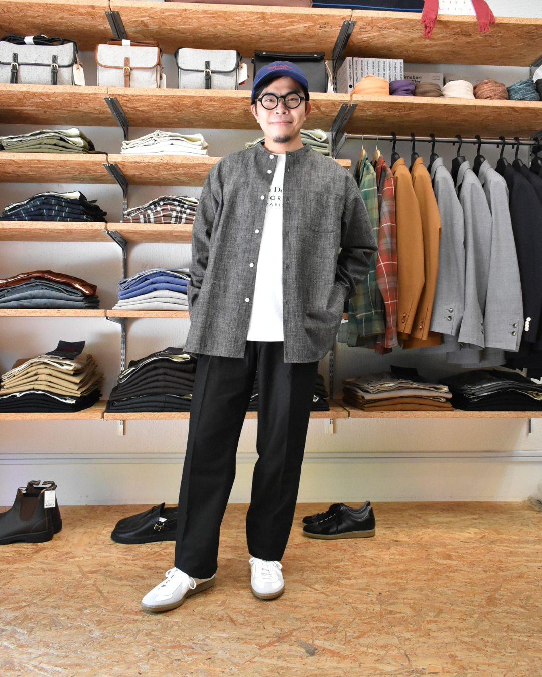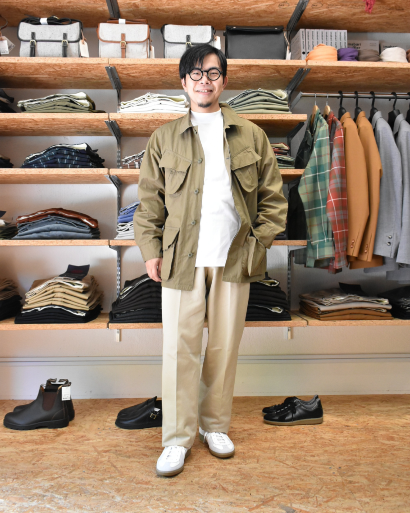シャツと合わせてクラシックに決めてもいいですが、よりカジュアルに合わせたいのが最近の気分です。weac.のカサネギでこの夏から秋への移行期を乗りこなしましょう。