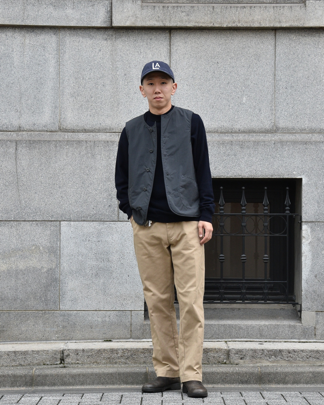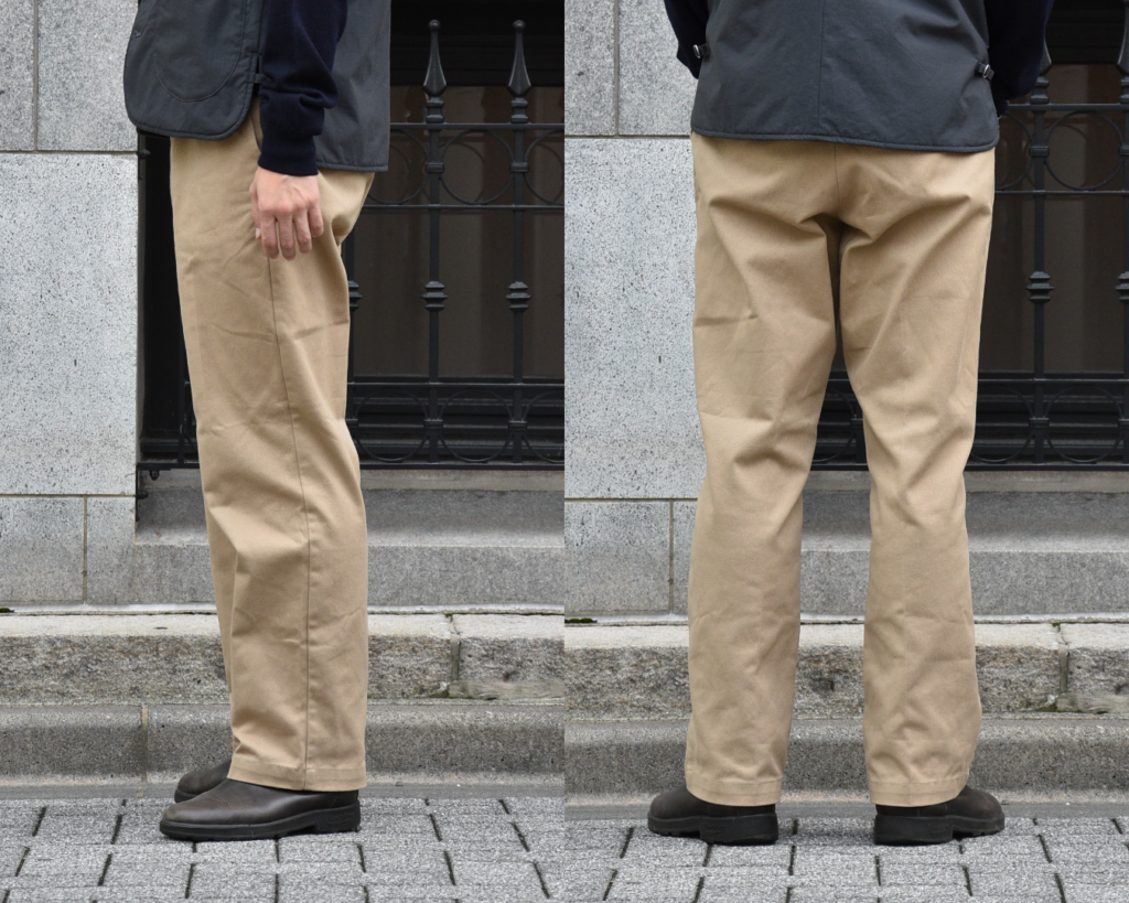 非常に汎用性の高い弱テーパードのワークパンツで、シルエットが綺麗ですから、大人の方にも穿いていただける一本に仕上がっております。