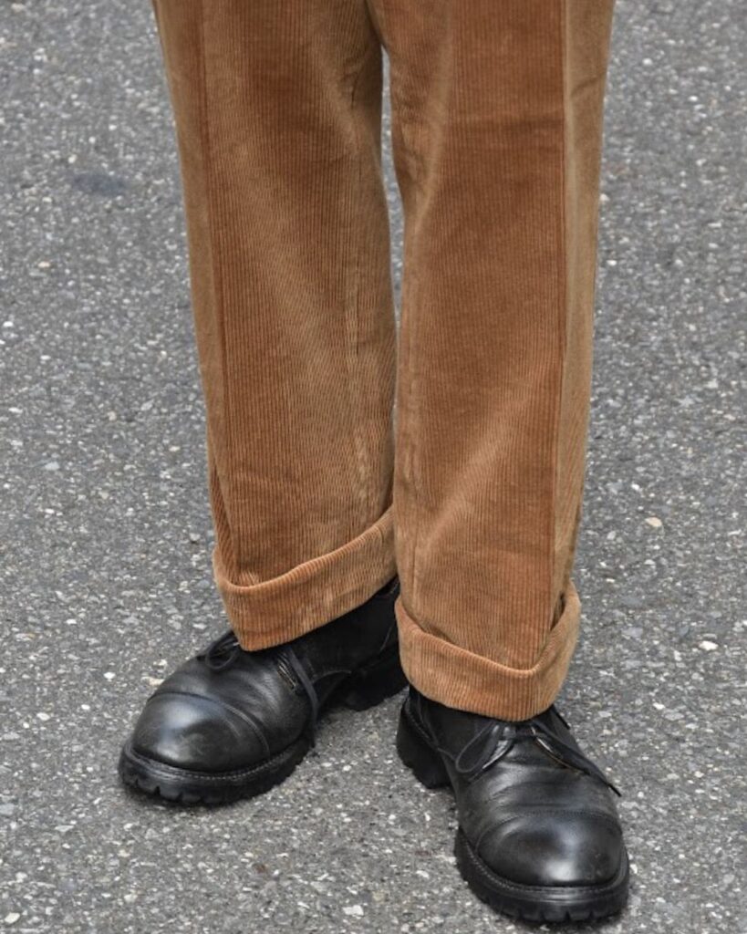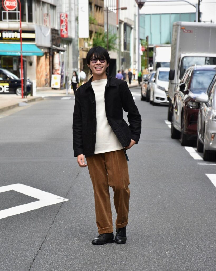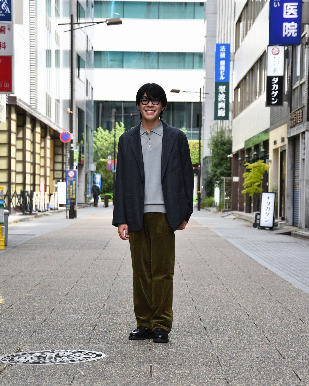 コーデュロイスラックスは店頭でも人気のダブル仕上げで組んでみました。