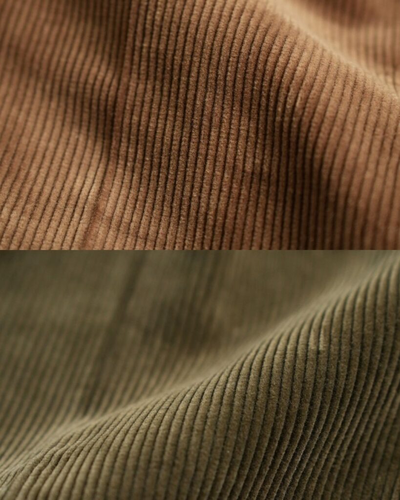 ●秋冬に映える二色展開:カーキとオリーブ ・カーキ:チノパン感覚で使える万能カラー。 ・オリーブ:ミリタリーテイストながら、コーデュロイ素材が柔らかい印象をプラス。 ●名作マッカーサーをベースにした別注モデル 元々、ダグラス・マッカーサーが愛用していたトラウザーをデザインソースにしており、クラシックな2タック仕様が特徴です。 シルエットは、太すぎず細すぎずの絶妙なシルエットが特徴になります。 ●素材は、静岡・遠州産のコーデュロイ生地を使用 ・伝統ある静岡県遠州地方で織られた高品質な国産コーデュロイ ・太畝(9W)(ウェル=畝の太さの単位)で表情豊か、しなやかで温かみのある風合い ・見た目からも秋冬らしさがしっかりと伝わる素材感