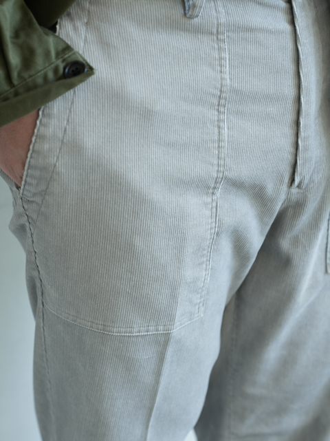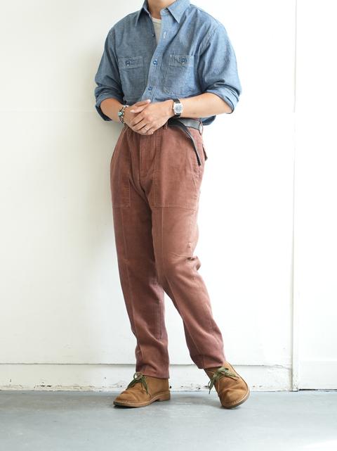 弊店別注のコーデュロイがアメリカントラディショナルに忠実であれば、こちらはLevi’sのコーデュロイ(517や519など)を彷彿とするような細畝コール。