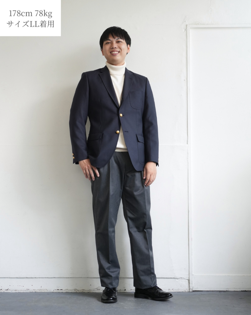 「身長178cm体重78kg胸囲104㎝ウエスト87cmのガッチリ体型で腕が58cmと長めの杉本が下にセーターを着ても問題ないサイズ」はLLサイズです。