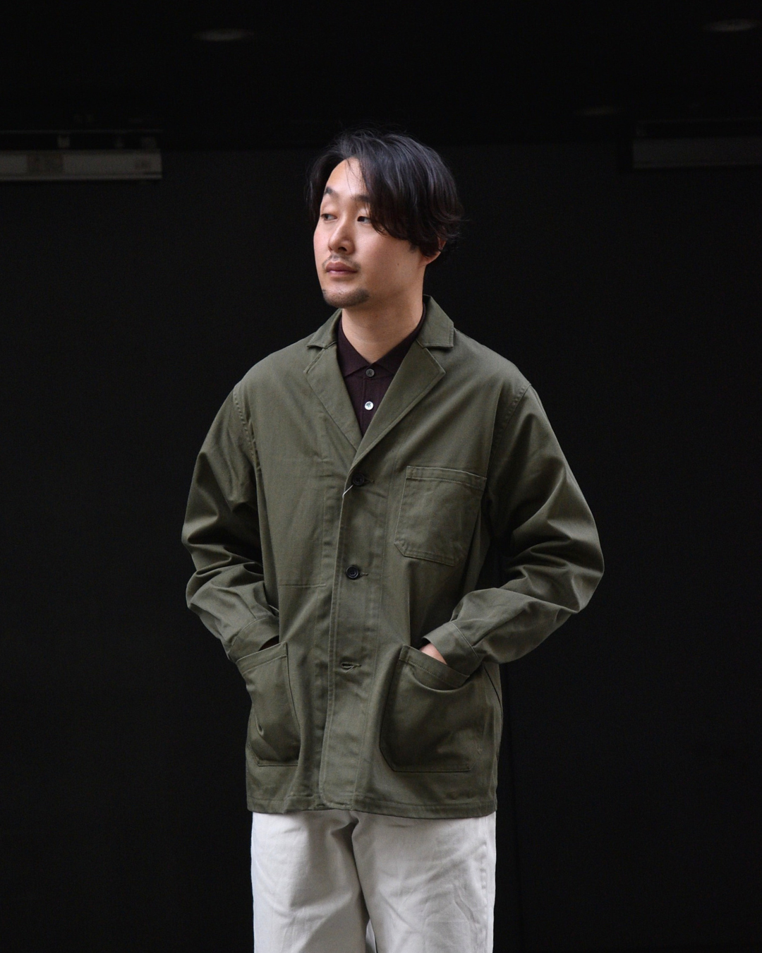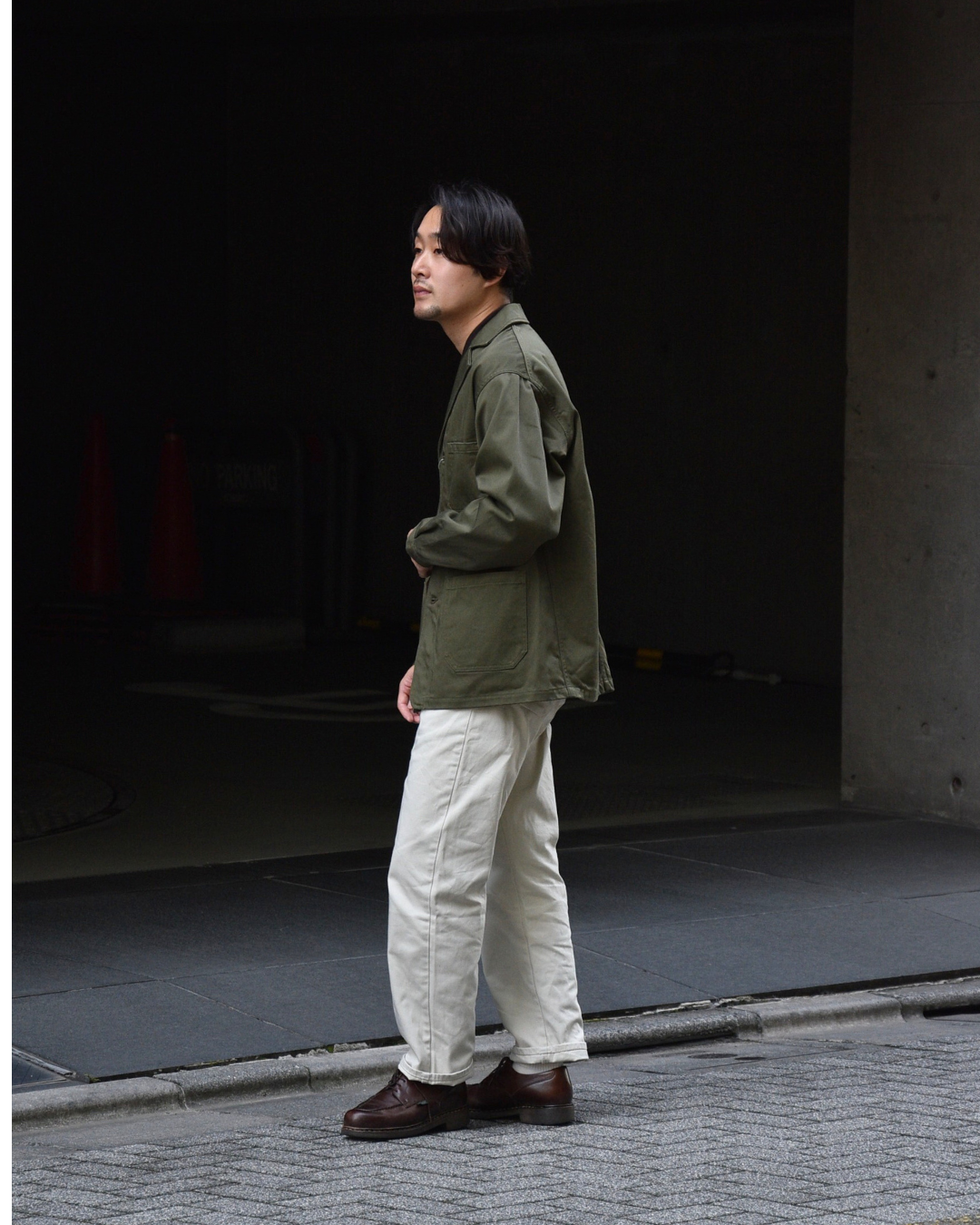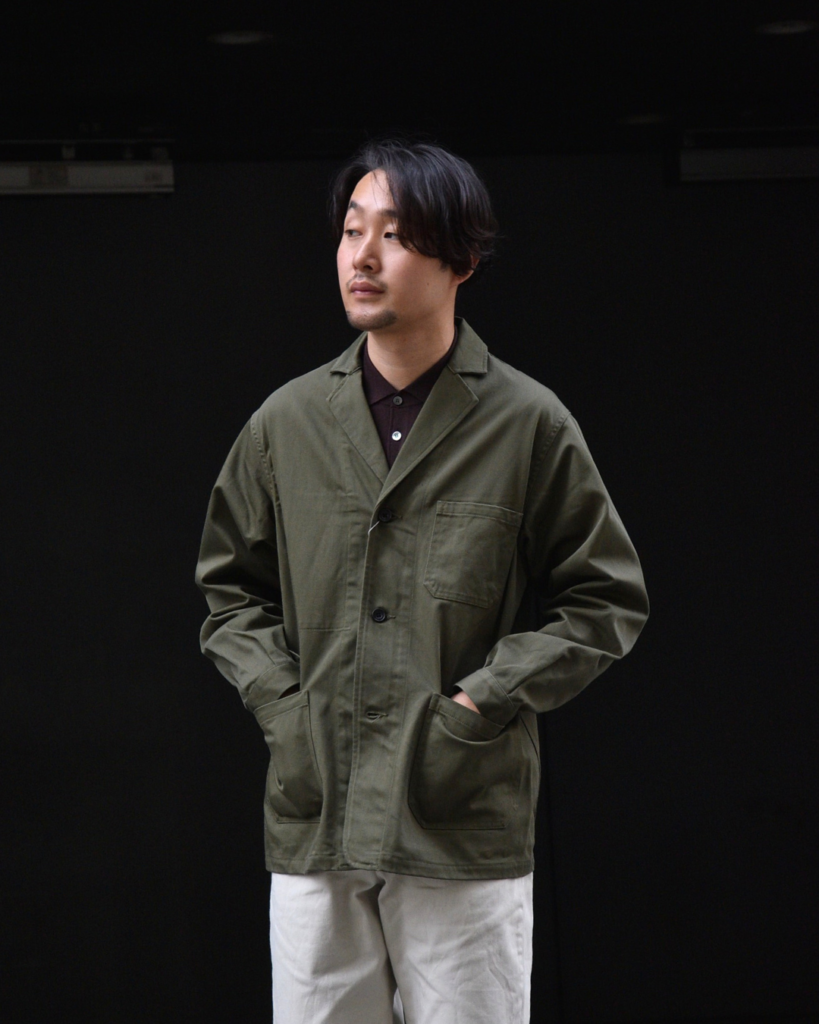 オリーブのファティーグジャケットと合わせていただくとアースカラーでまとまって秋らしく仕上がります。