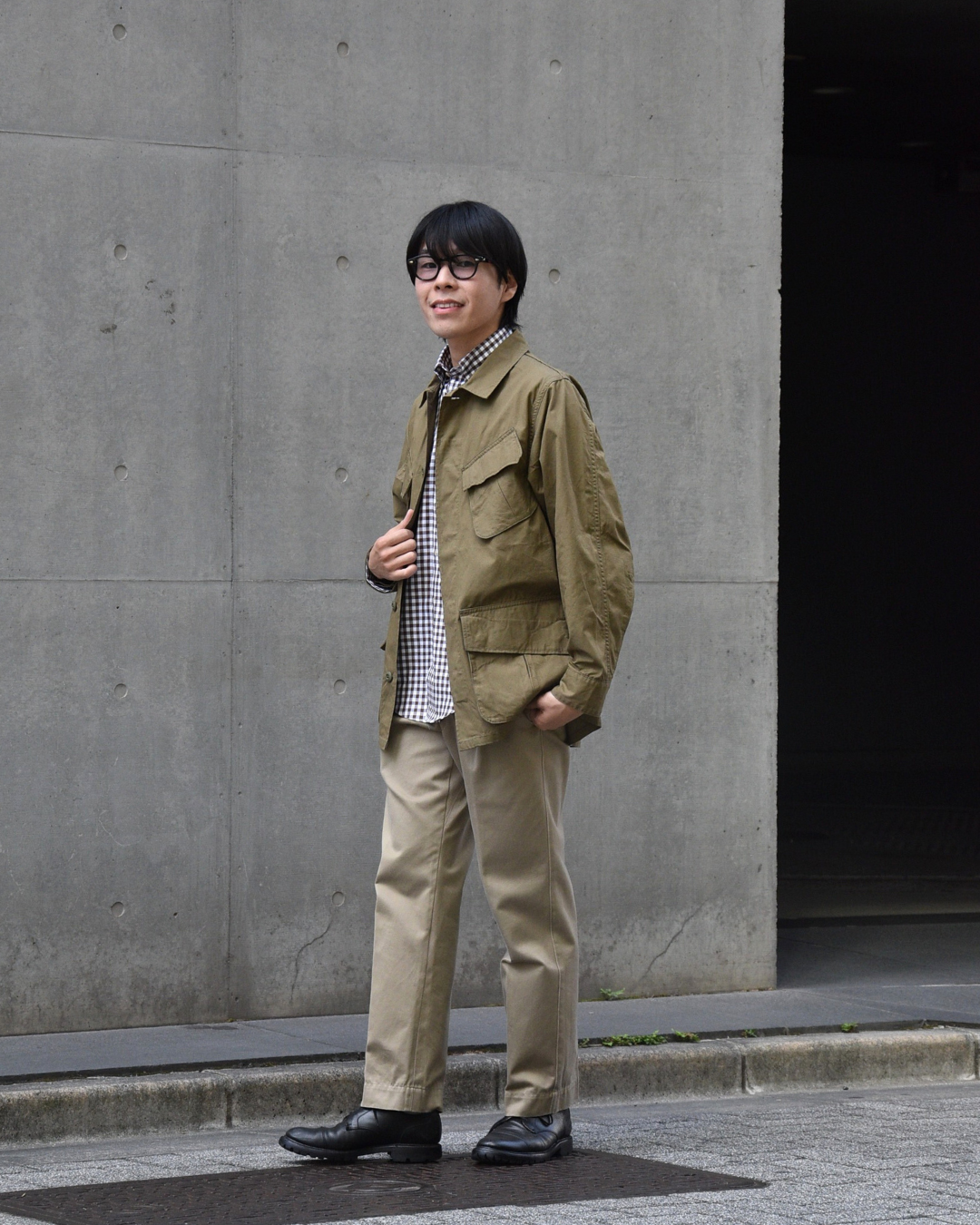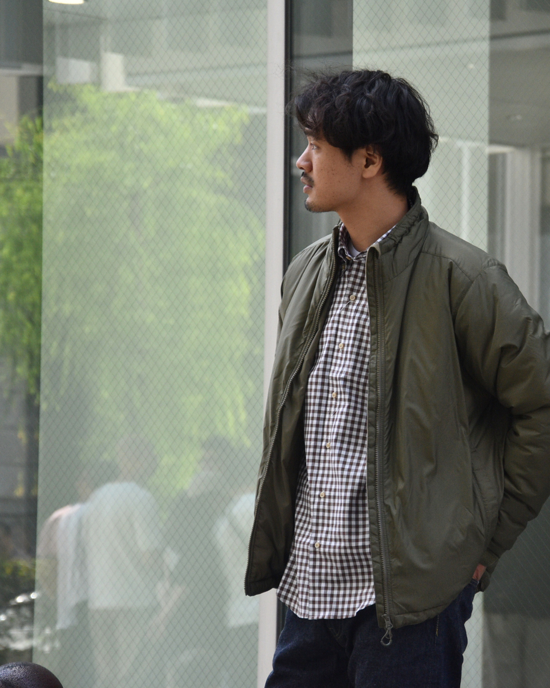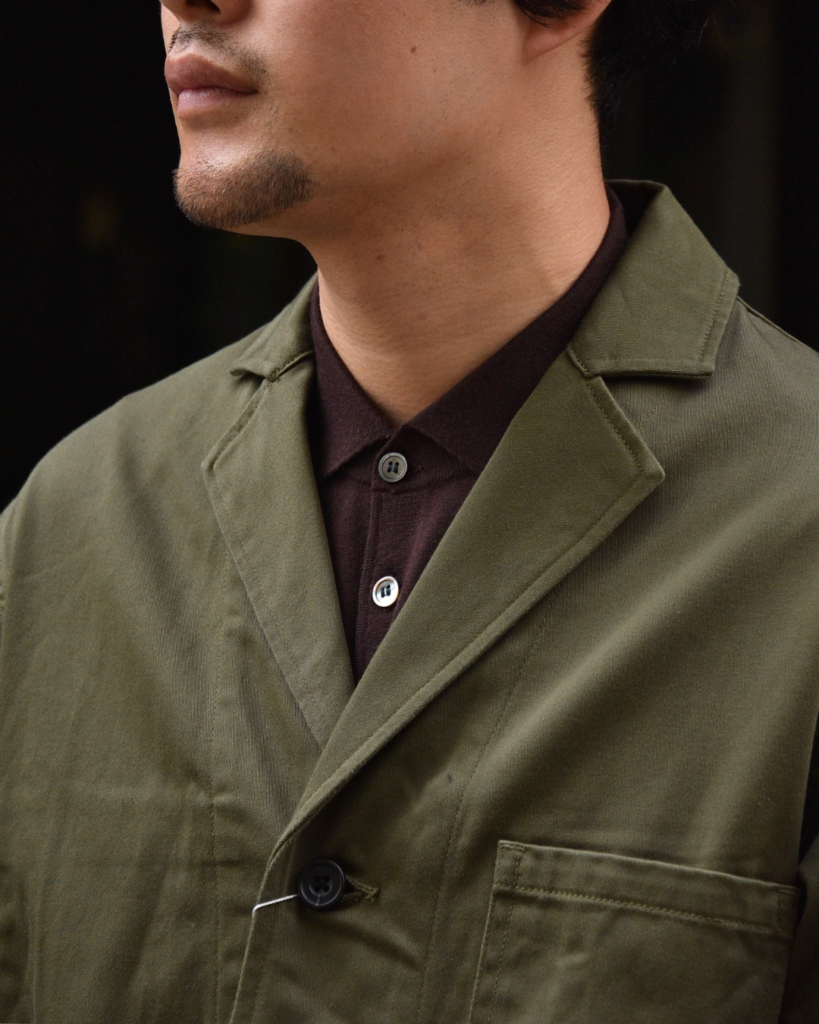 東京出張に来ていたスタッフ本並もやはりオリーブのジャケットと合わせていました。