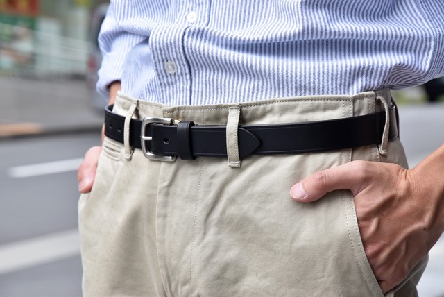 幅27mmと最もベーシックなサイズ感ですので幅広いボトムスと合わせていただけます。