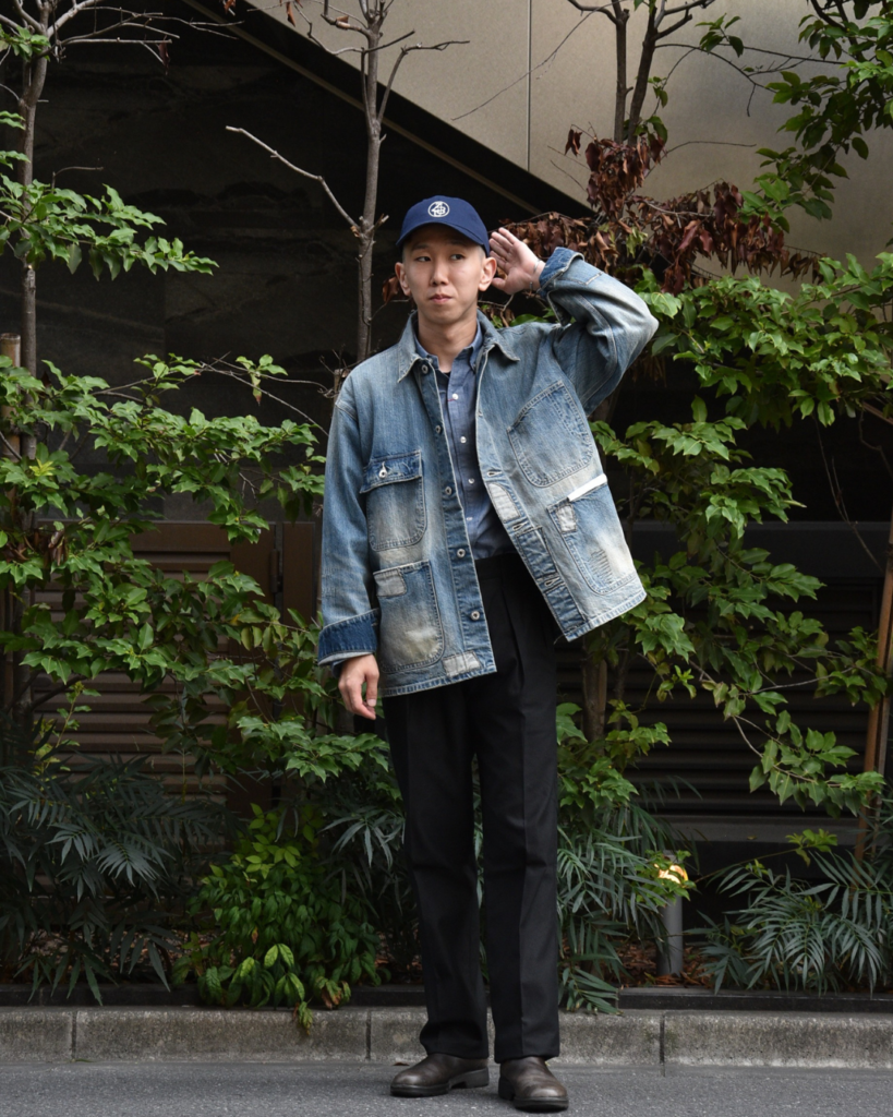 SEROのシャンブレーシャツにマッカーサーフロントと少し綺麗目な要素がある所にこそこのアウターはハマるような気がします。でもあくまでカジュアルなスタイリングなので、キャップやブランドストーンで。