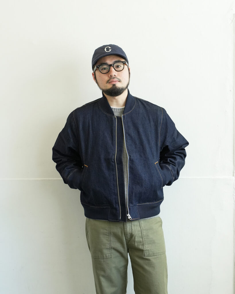 肝心なサイズ感はオリジナルのフライトジャケットのゆとりはそのままに着丈を長く調整してより着やすいバランスです。