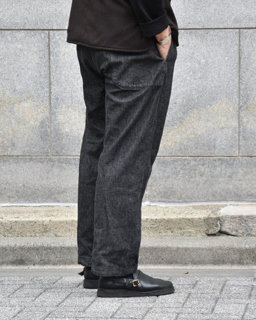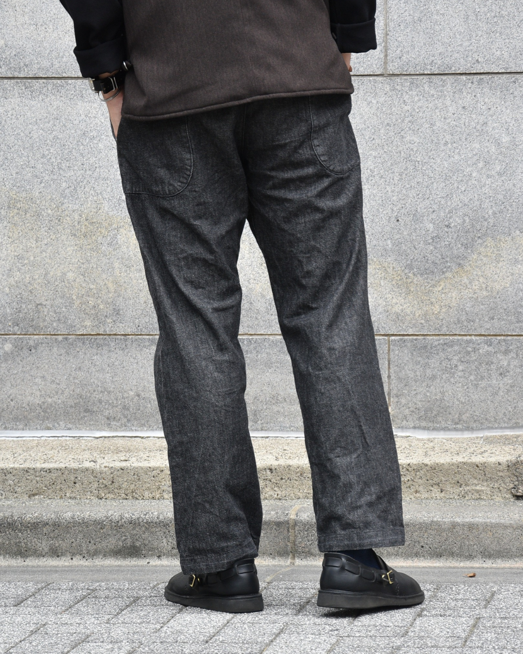 緯糸白のブラックデニムの生地感と、らしいバランスの出し方が効いてます。バックポケットがかわいー点もプラスです。