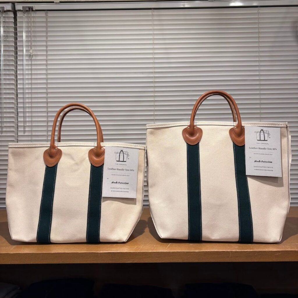 ボートトートと違って持ち手がレザーでより上品なスタイルにも合わせやすくなっております。