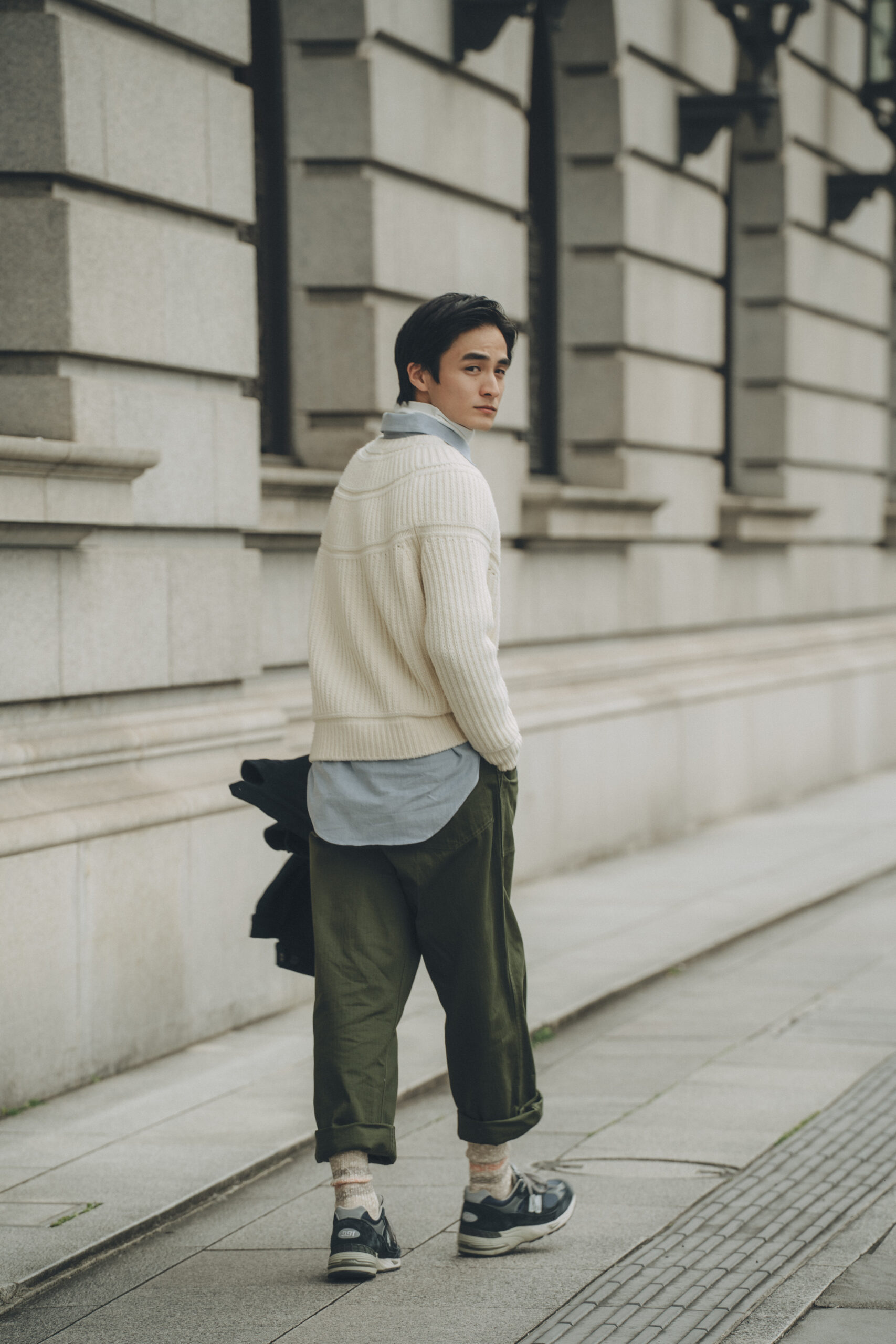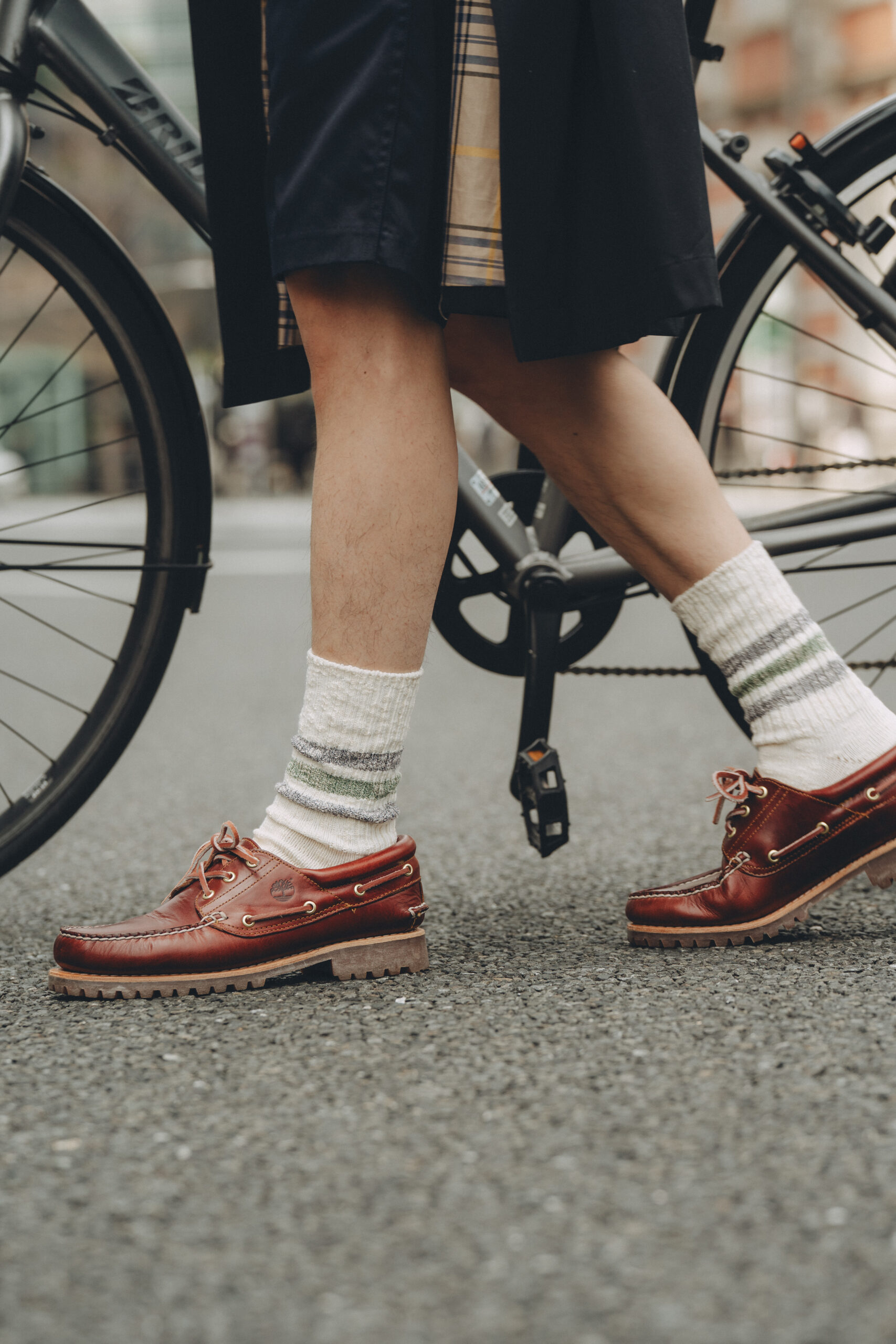 ローゲージのリブ機を使用した一足。