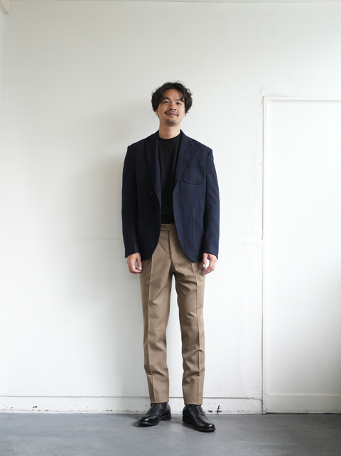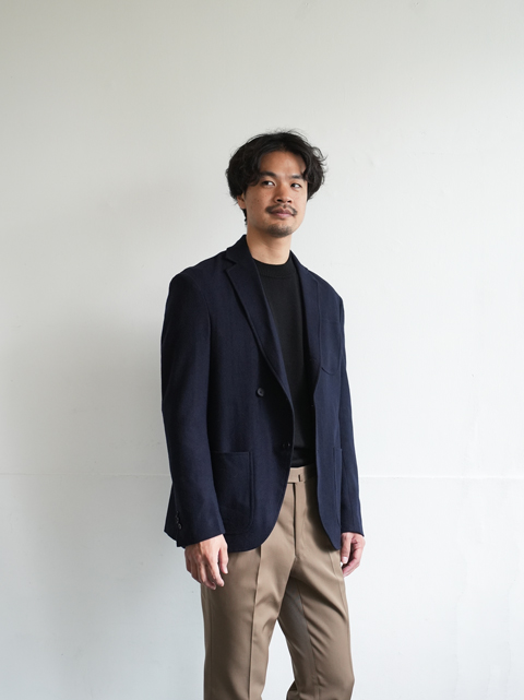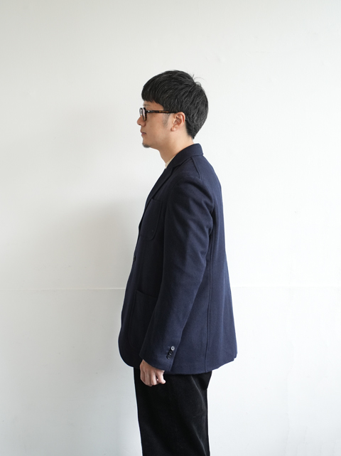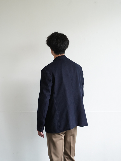 裏地には画材用キャンバス(コットン100%)を使用しており、シンプルなネイビージャケットながら、随所のディテール、素材使いが効いております。